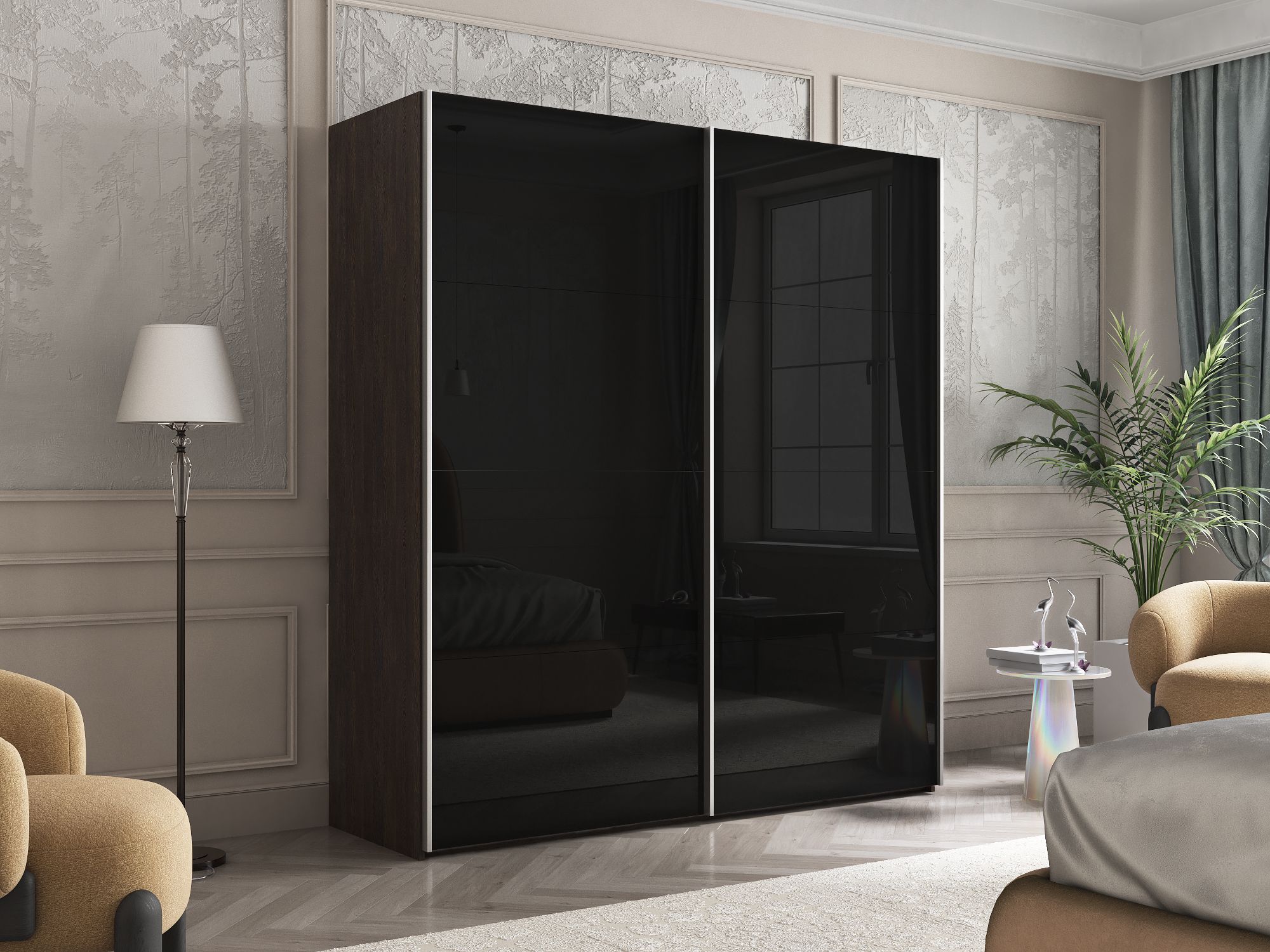 Отзывы о Столплит Шкаф Эста дуо Стекло черное 2400 х 2000 х 660 Венге мали