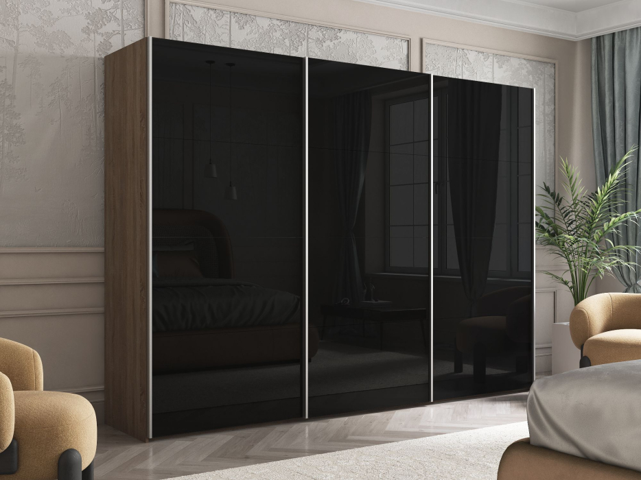 Отзывы о Столплит Шкаф Эста трио Стекло черное 2400 х 3000 х 660 Дуб Бардолино