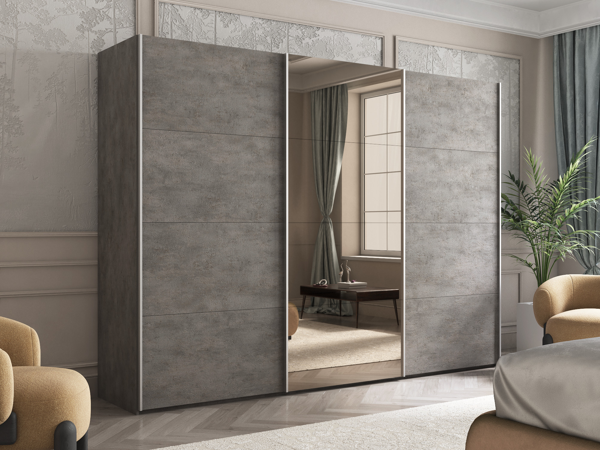 Отзывы о Столплит Шкаф-купе Эста ДСП+Зеркало+ДСП 270х66х240 Бетон серый