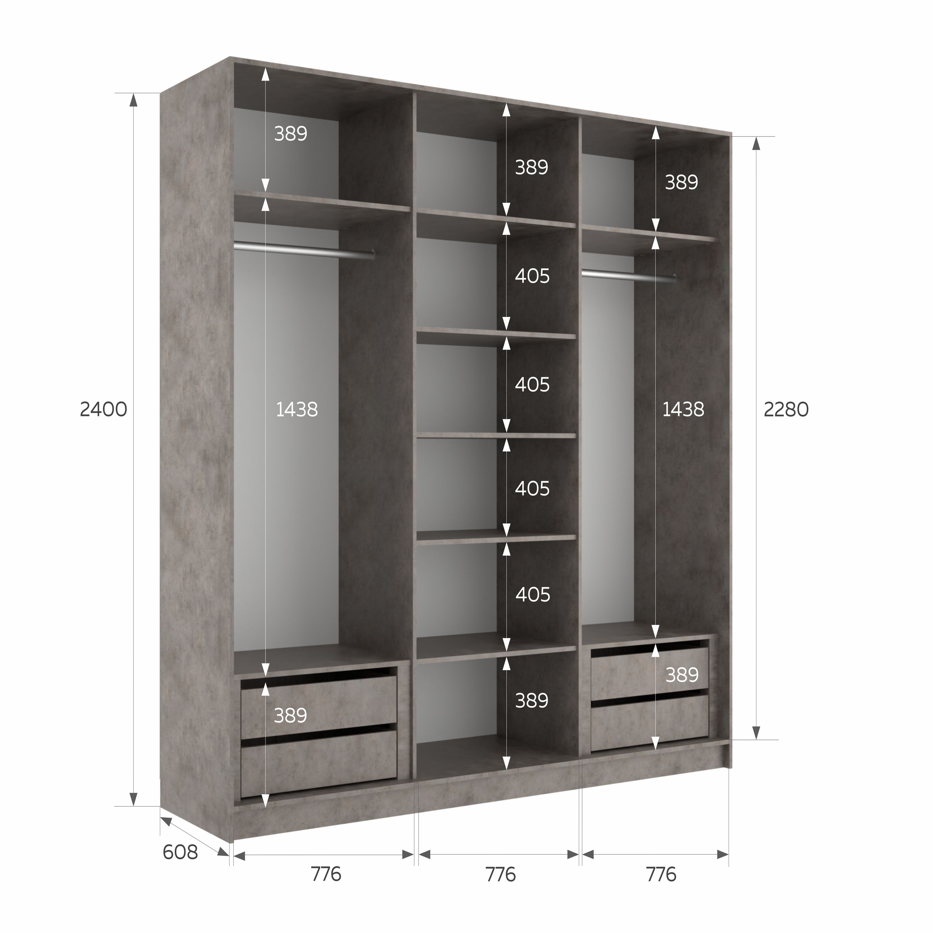 Отзывы о Столплит Шкаф-купе Эста Трио Стекло белое 240х66х240 Бетон серый