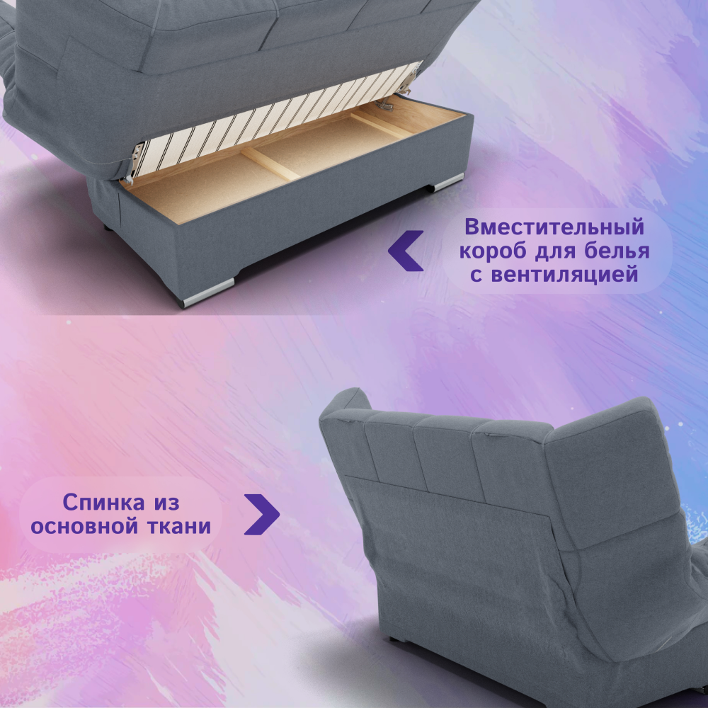 Металлокаркас обеспечивает прочность и долговечность дивана, а ортопедичиские латы помогают сохранить его форму даже при интенсивном использовании.