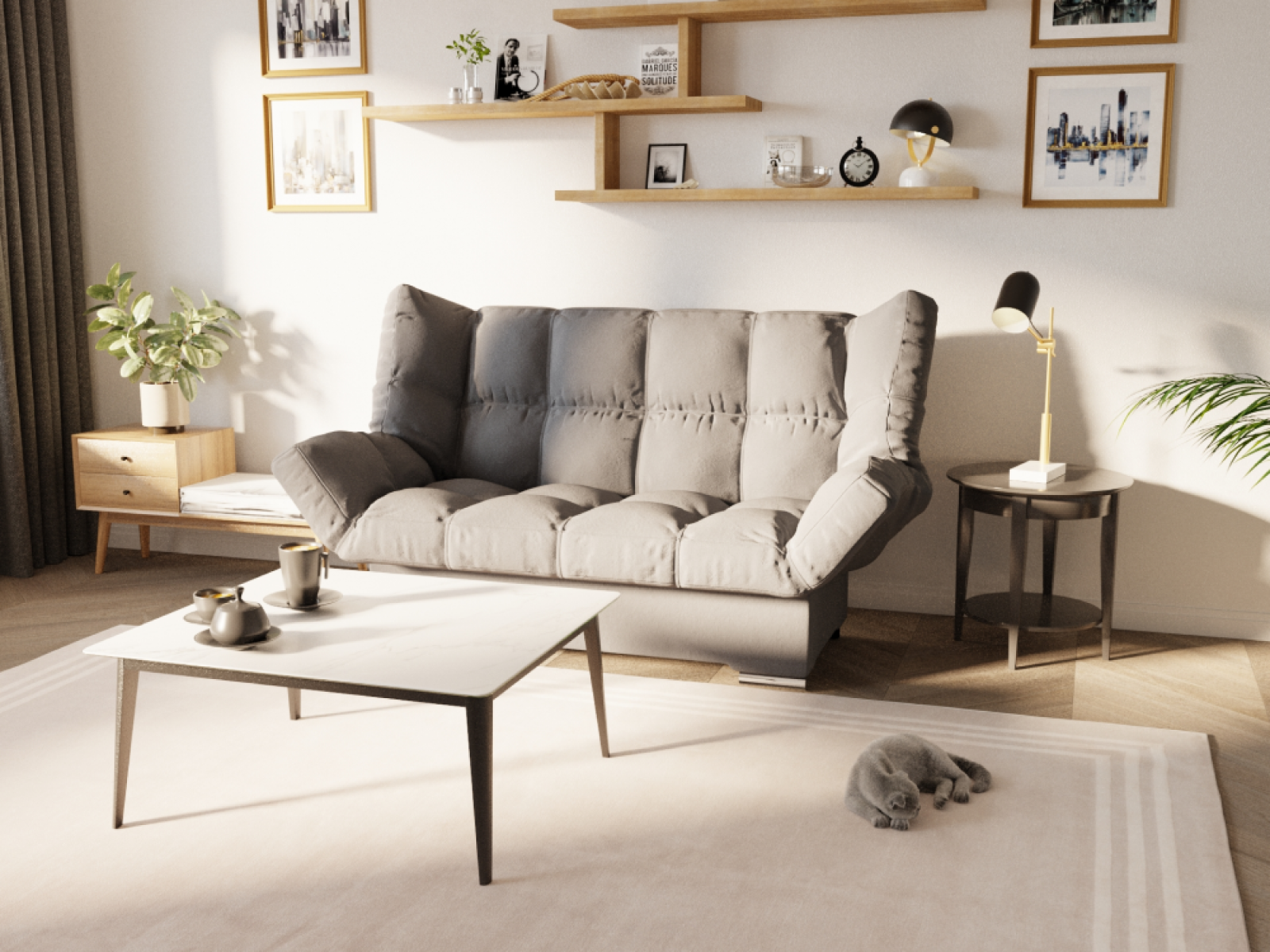 Механизм трансформации “Клик-кляк” позволяет быстро и легко превратить диван в удобную кровать, а затем вернуть его в исходное положение.