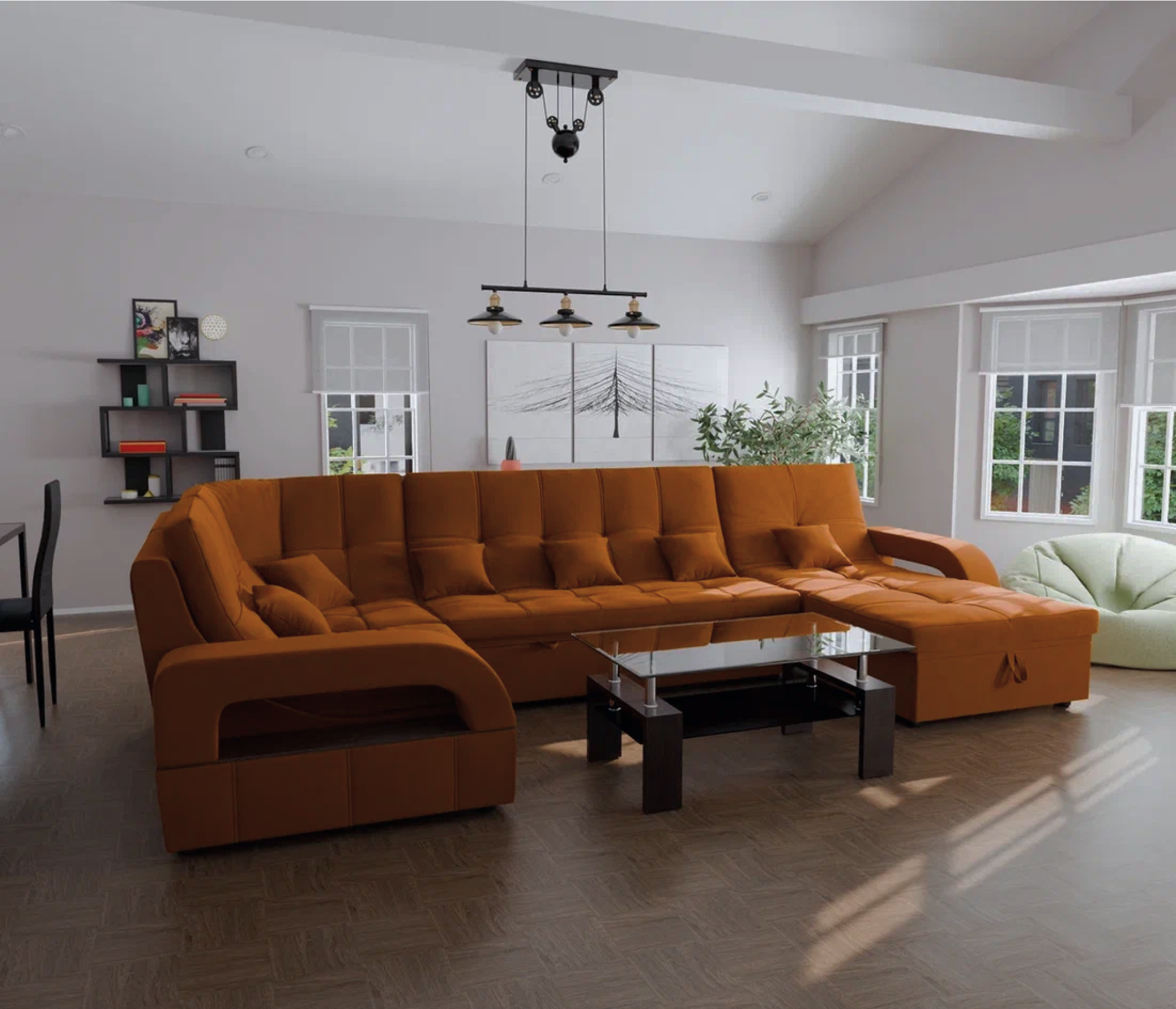 Он имеет высоту 97 см, ширину 350 см и глубину 187 см. Обит велюром - Veluta lux. Диван обладает универсальным расположением угла, что позволяет его использовать в любом помещении.