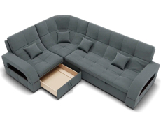 Он имеет высоту 97 см, ширину 187 см и глубину 268 см. Диван обладает универсальным расположением угла, что позволяет его использовать в любом помещении.