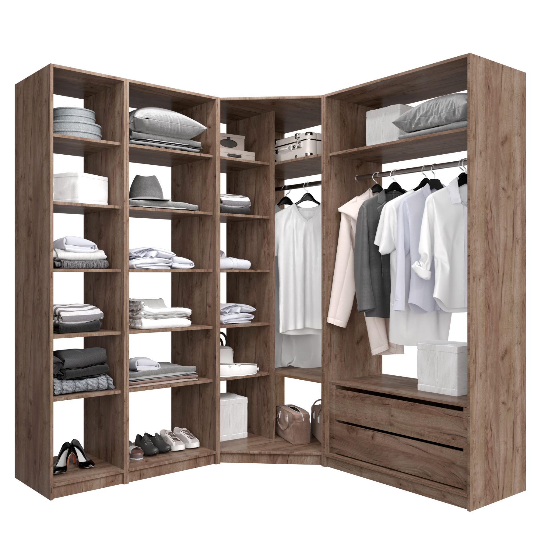 Отзывы о Столплит Угловая гардеробная система с полками и модулем MOD_COMPL_UG Дуб/крафт/табак