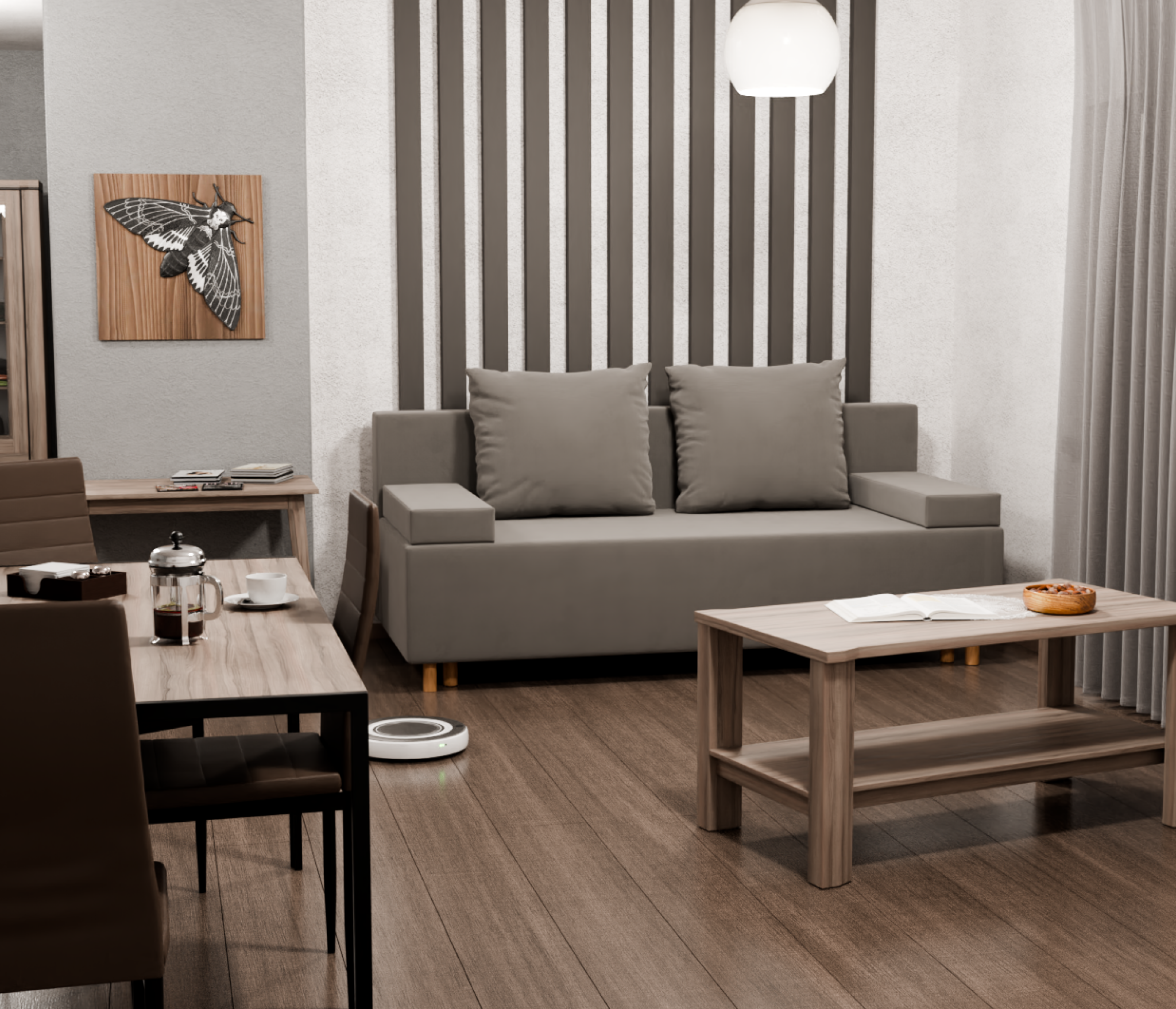 Диван-кровать имеет универсальный угол, что позволяет установить его в любой комнате, даже если она небольшая. Обивка выполнена из высококачественного велюра, который не только выглядит стильно, но и легко чистится.