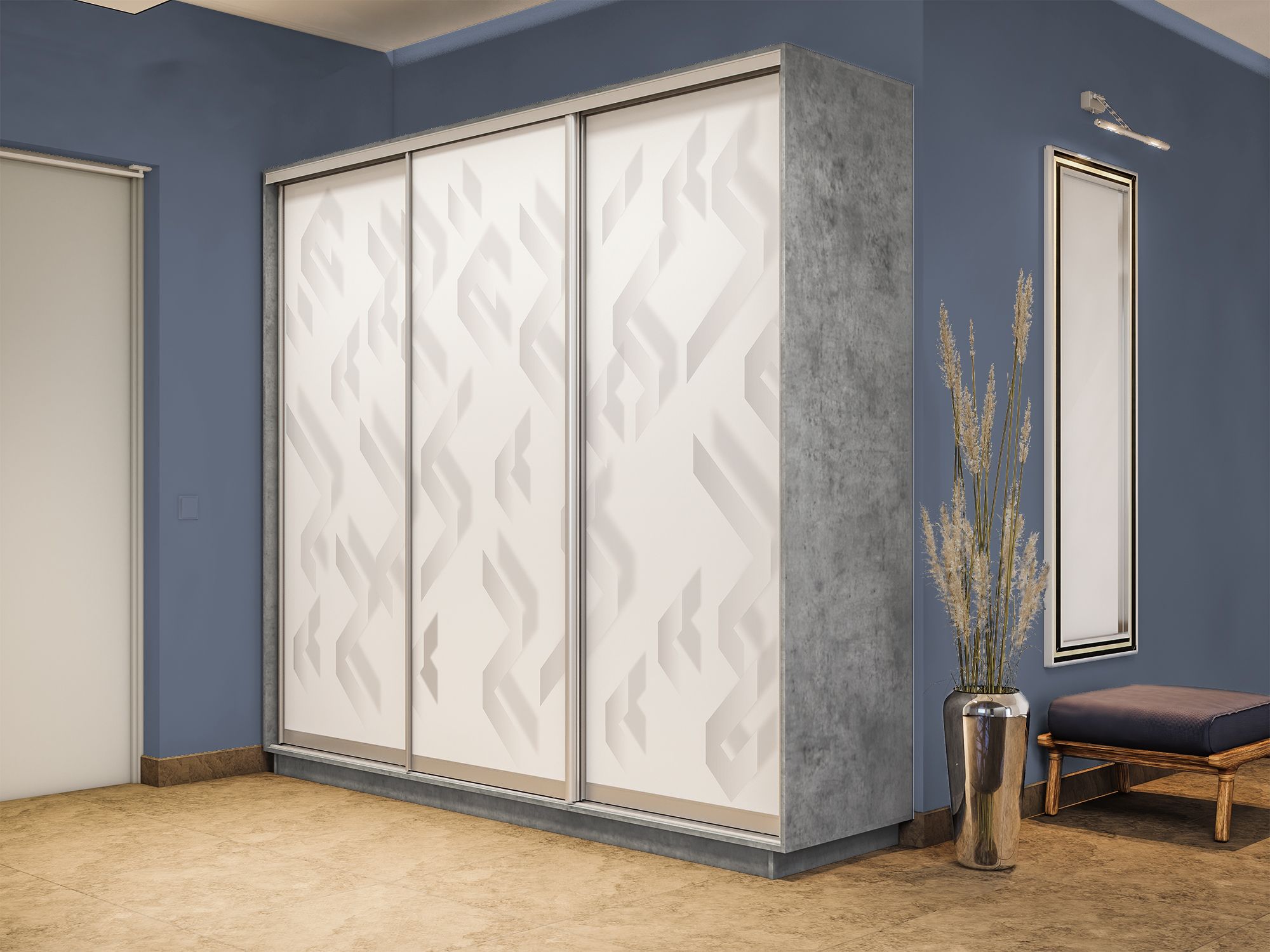 Отзывы о Столплит Шкаф-купе Экспресс 3-х дверный Фотопечать Ленты Стекла 240х45х240 Бетон