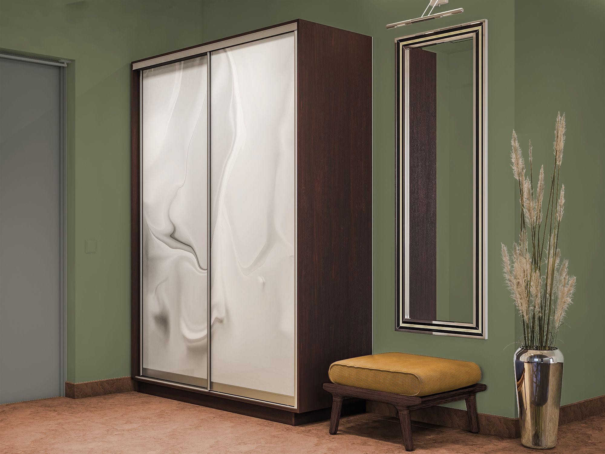 Отзывы о Столплит Шкаф-купе Экспресс 2-х дверный Фотопечать Шелк Стекла 140х45х220 Венге