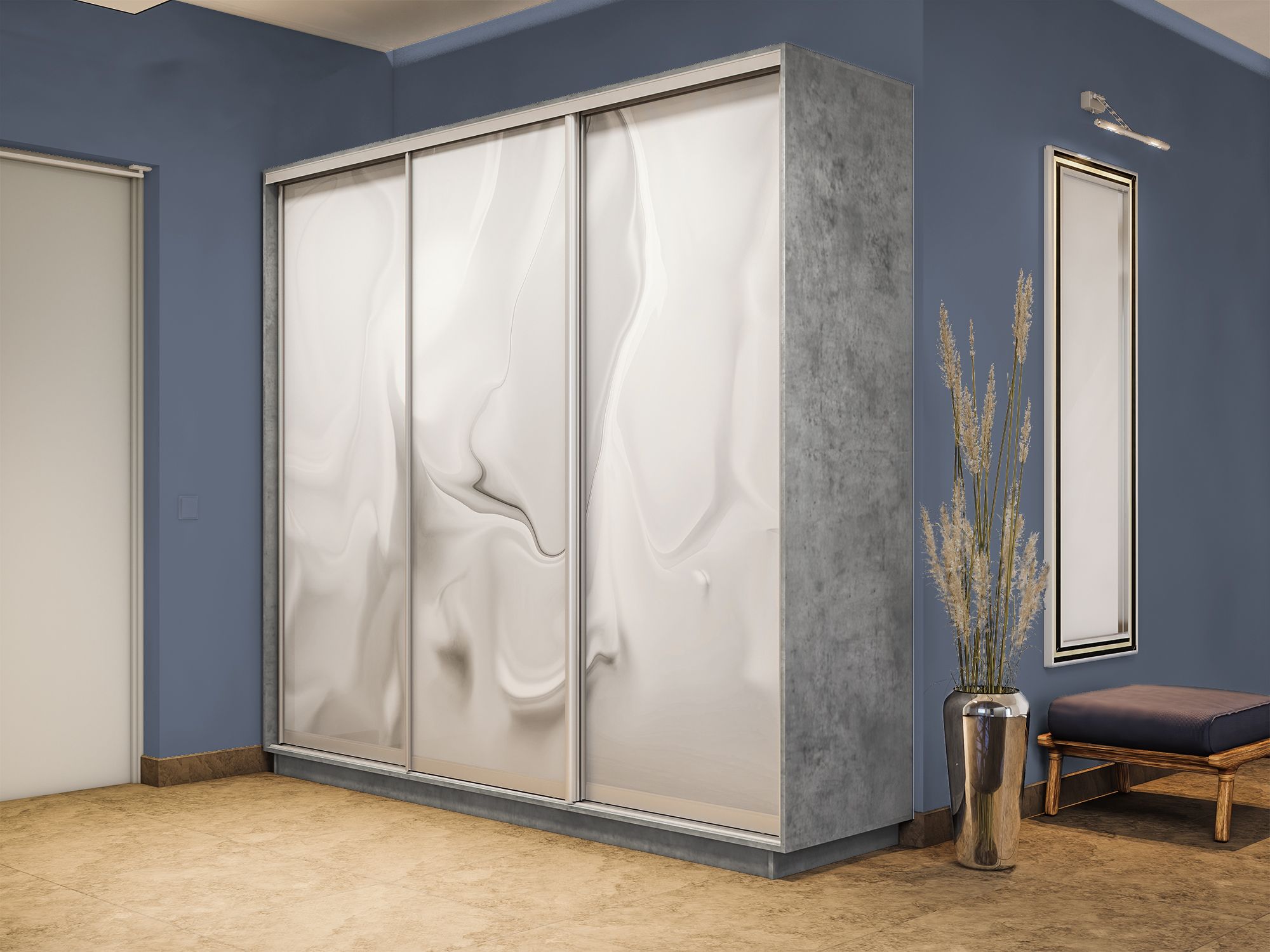 Отзывы о Столплит Шкаф-купе Экспресс 3-х дверный Фотопечать Шелк Стекла 180х45х220 Бетон