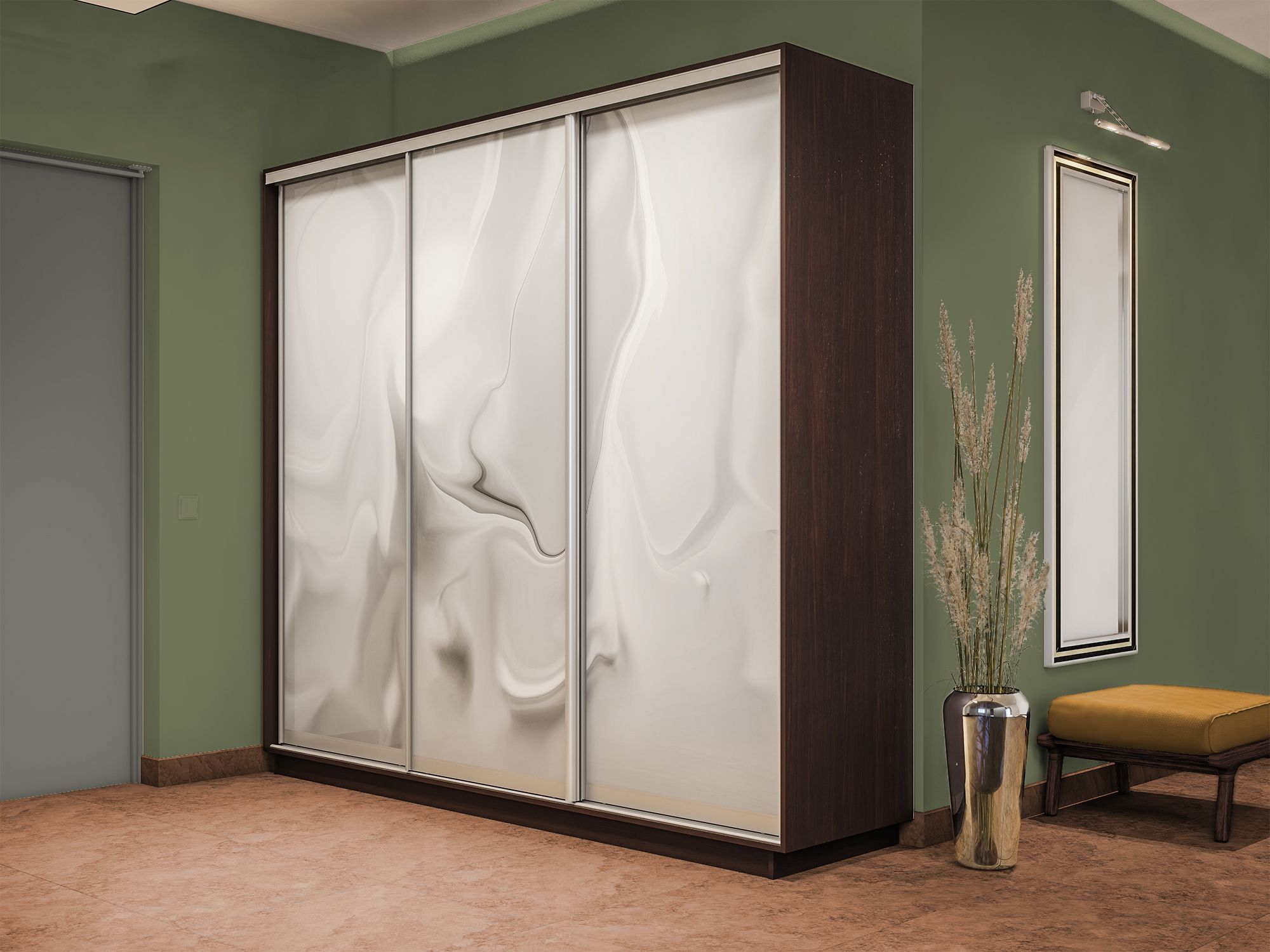 Отзывы о Столплит Шкаф-купе Экспресс 3-х дверный Фотопечать Шелк Стекла 180х60х220 Венге