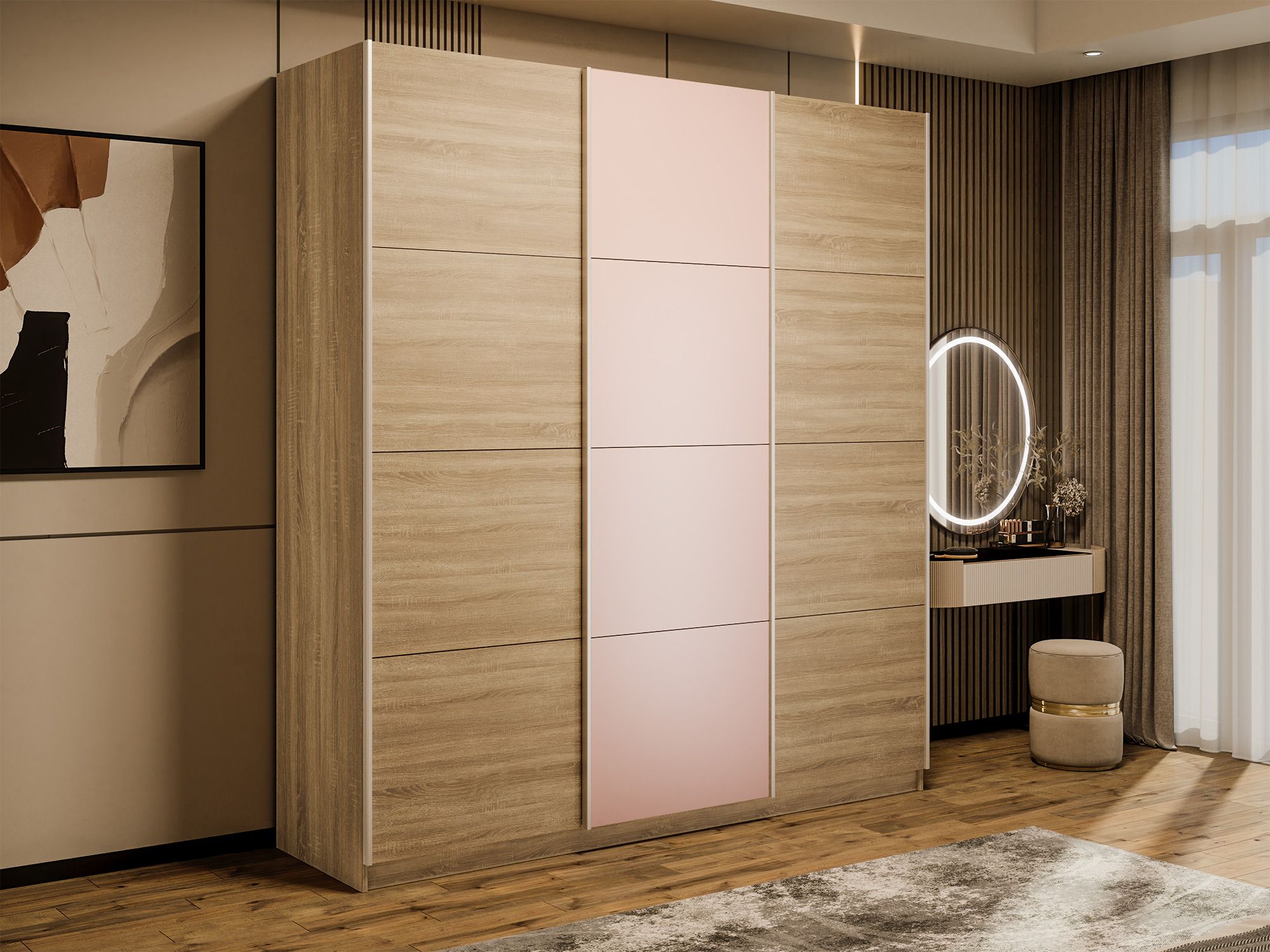 Отзывы о Столплит Шкаф-купе Эста 3-х дверный ДСП/Стекла пудра/Доводчик 240х66х240 Дуб Бардолино