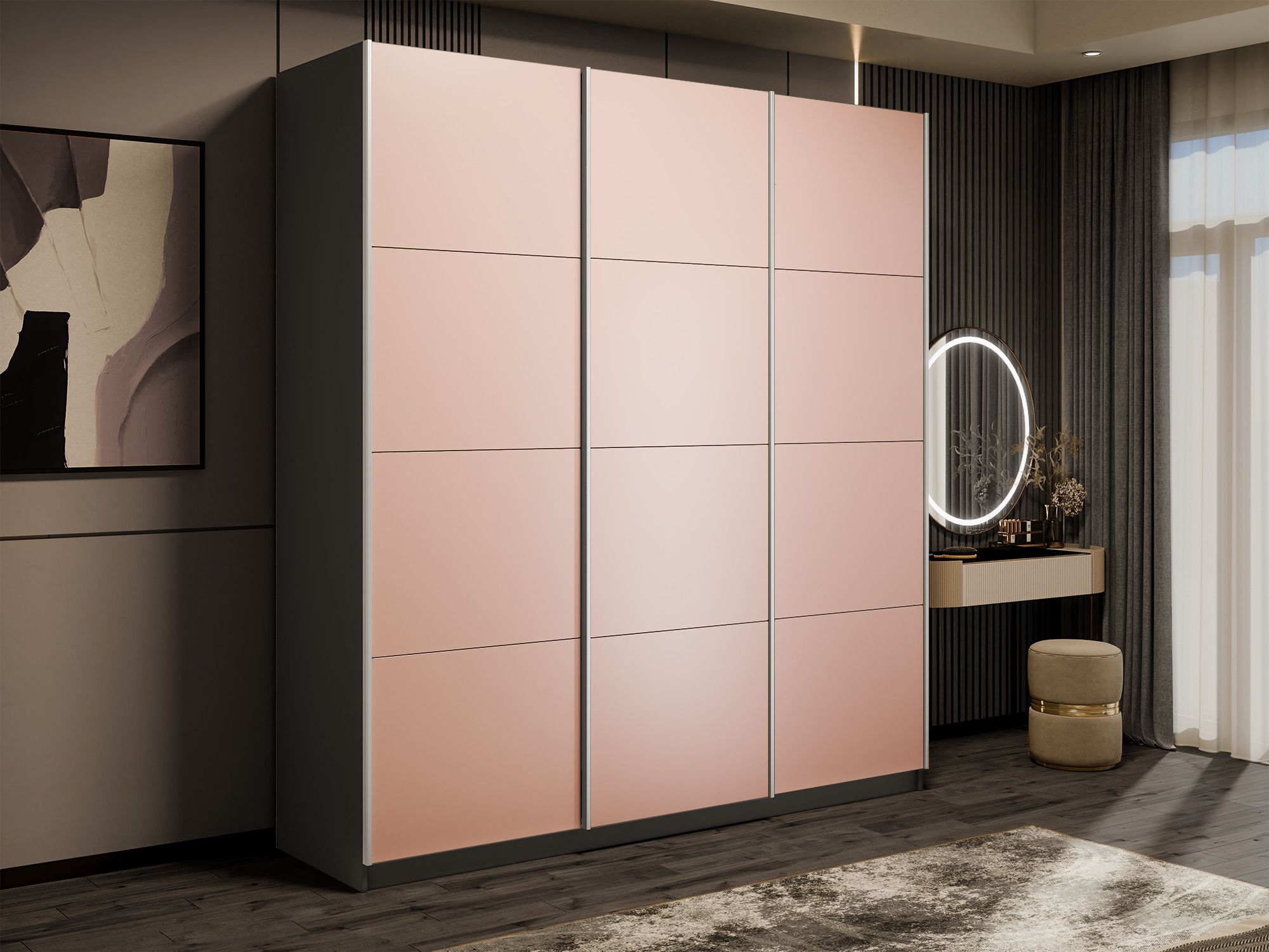 Отзывы о Столплит Шкаф-купе Эста 3-х дверный Стекла пудра/Доводчик 240х66х240 Диамант серый