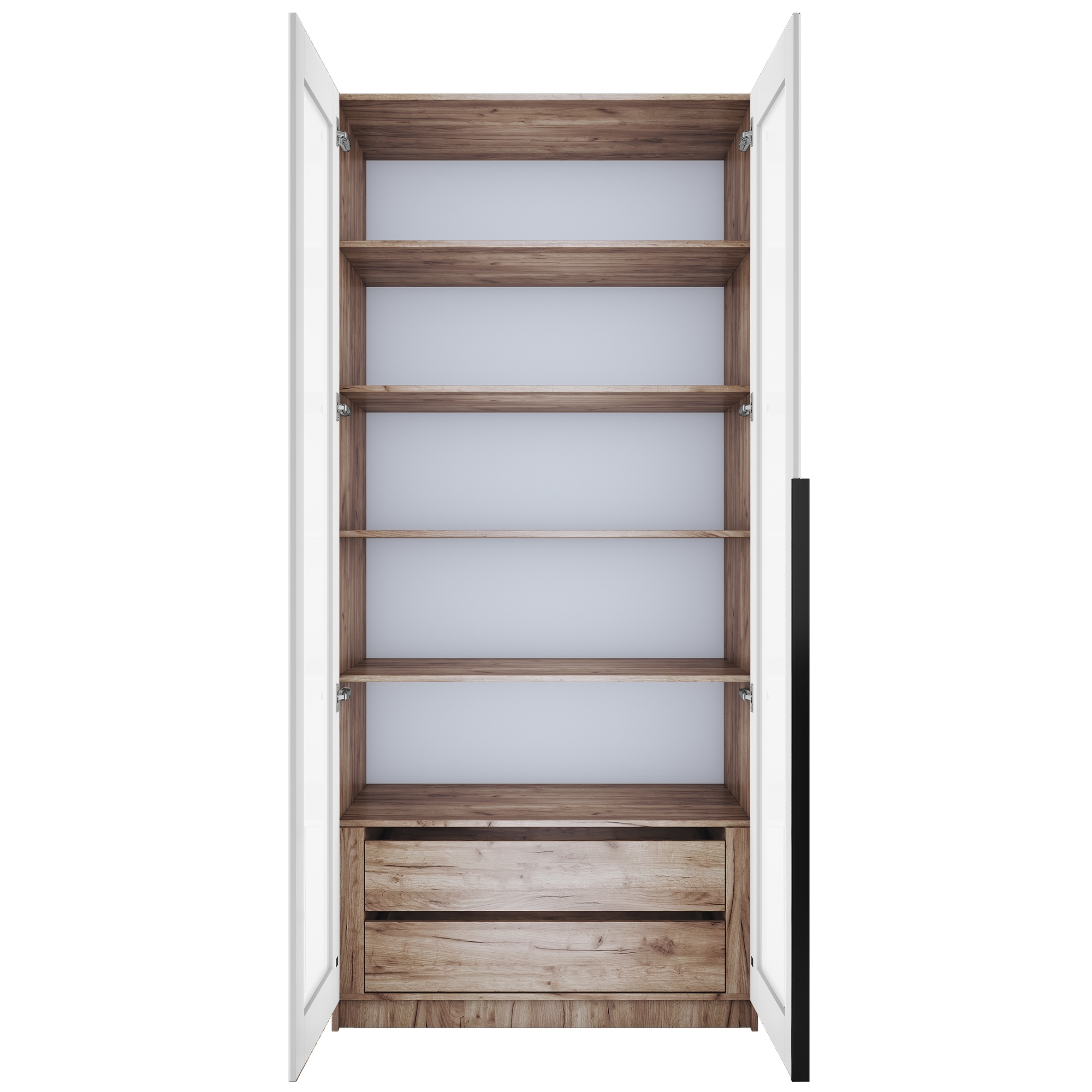 Благодаря надежным полкодержателям - штифтам, полки шкафа могут выдерживать до 15 кг. Шкаф оснащен долговечной, ударостойкой кромкой ПВХ, которая защищает его торцы от сколов и повреждений.