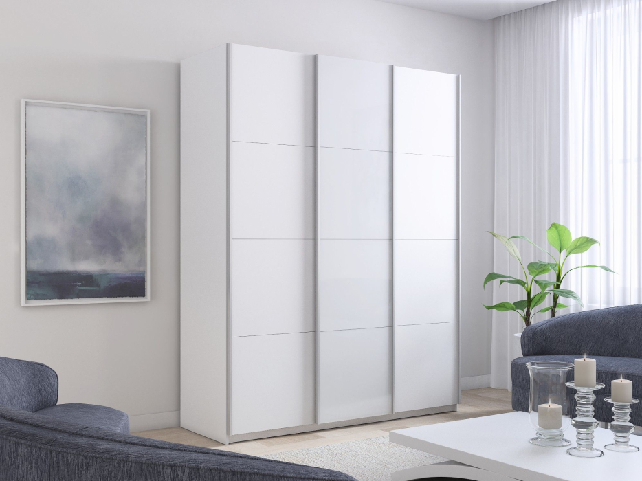 Отзывы о Столплит Шкаф-купе Прайм 3-х дверный ДСП/Стекло белое/Доводчики 180х57х230 Белый снег