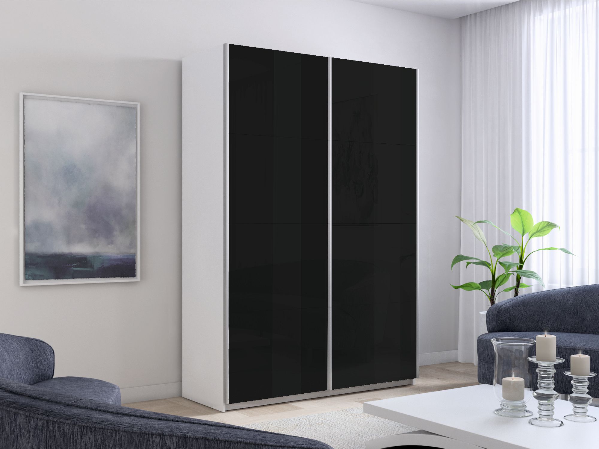 Шкаф-купе Прайм 2-х дверный Стекла черные/Доводчики 120х57х230 Код I0000427419