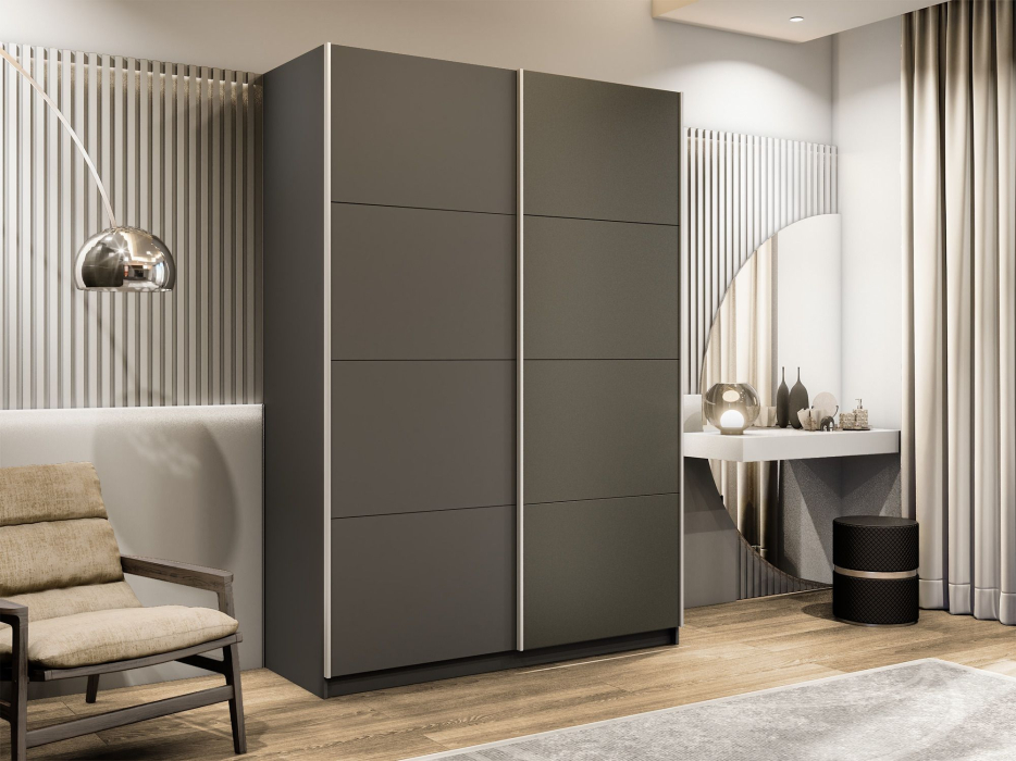 Отзывы о Столплит Шкаф-купе Прайм 2-х дверный ДСП/Стекло хаки/Доводчики 140х57х230 Диамант серый
