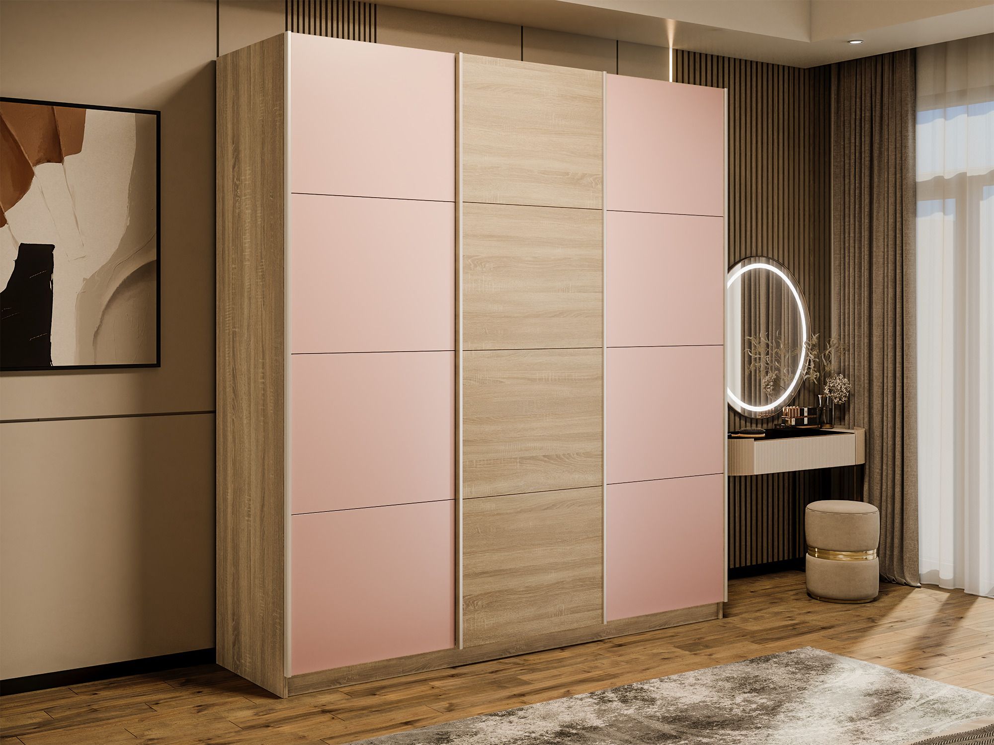 Отзывы о Столплит Шкаф-купе Прайм 3-х дверный Стекла пудра/ДСП/Доводчики 210х57х230 Дуб сонома