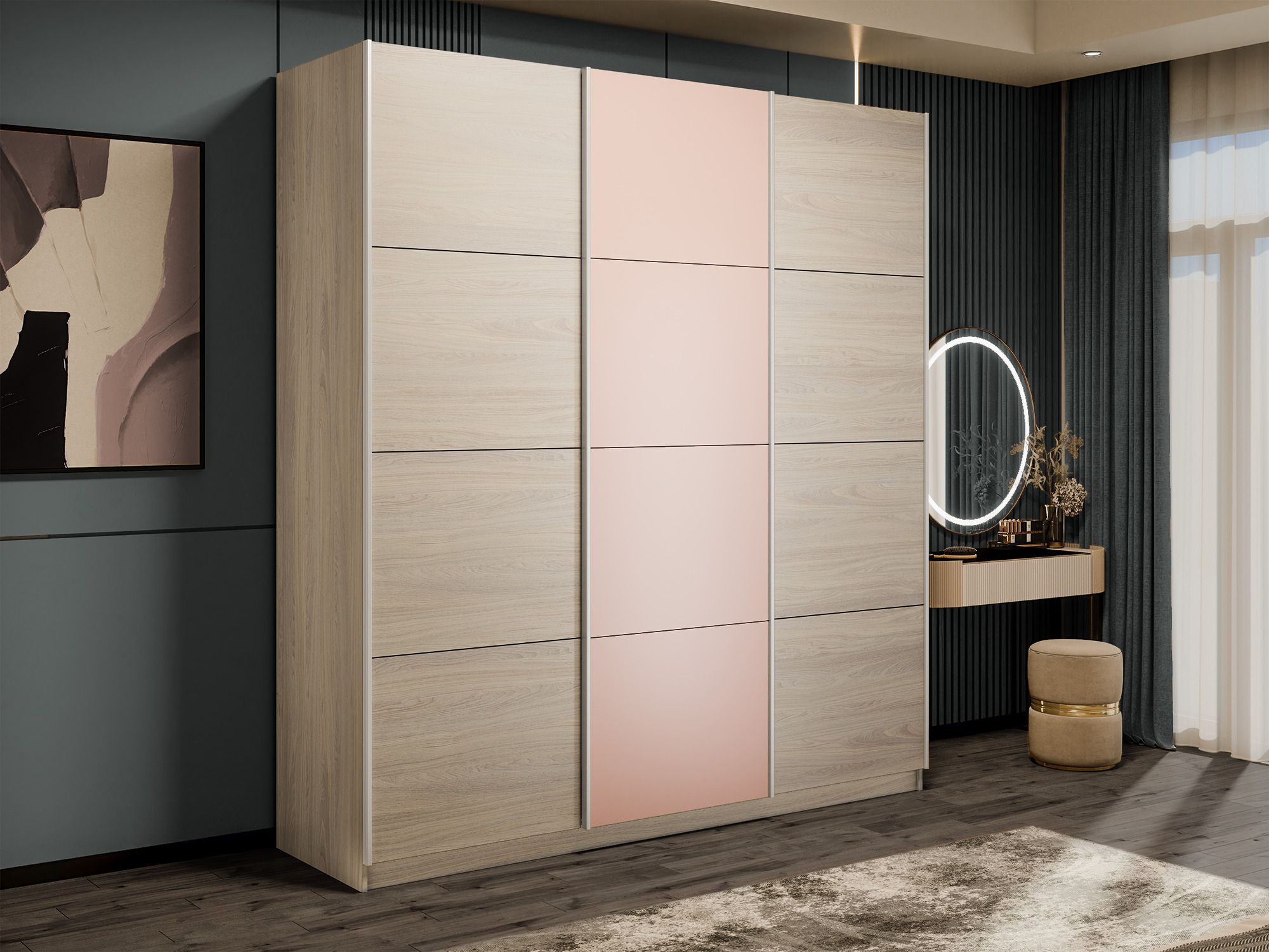 Отзывы о Столплит Шкаф-купе Прайм Широкий 3-х дверный ДСП/Стекла пудра/Доводчики 240х57х230 Ясень Анкор светлый