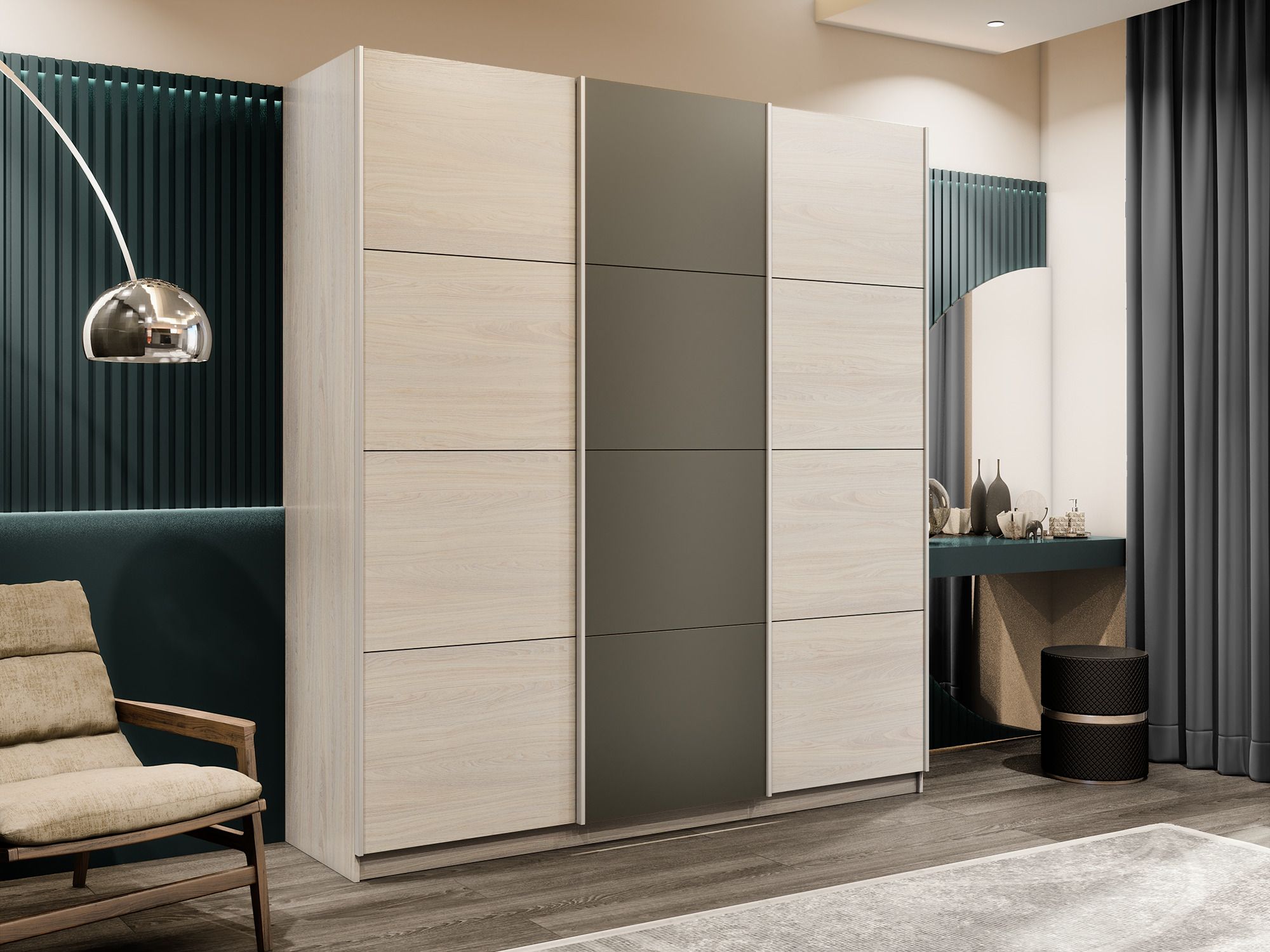 Отзывы о Столплит Шкаф-купе Прайм Широкий 3-х дверный ДСП/Стекла хаки/Доводчики 240х57х230 Ясень Анкор светлый