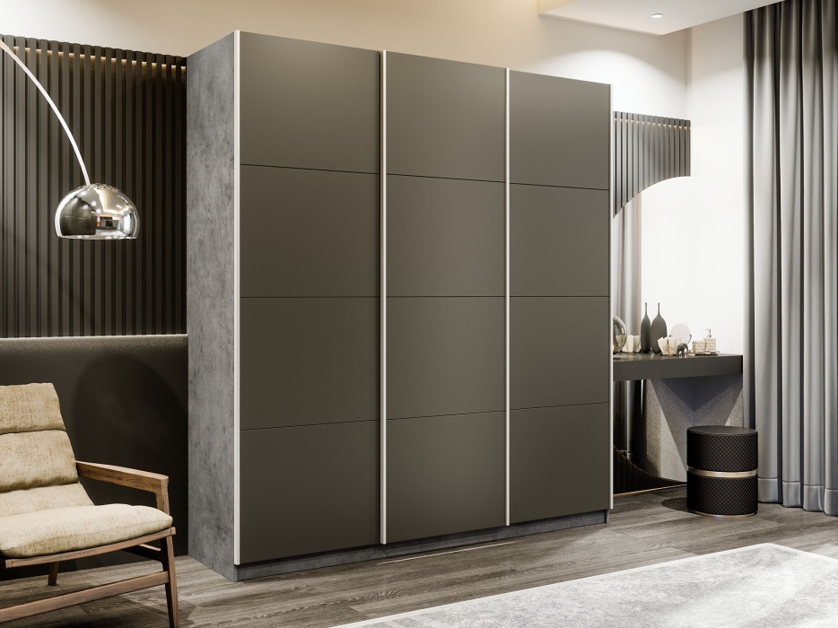 Отзывы о Столплит Шкаф-купе Прайм Широкий 3-х дверный Стекла хаки/Доводчики 240х57х230 Бетон