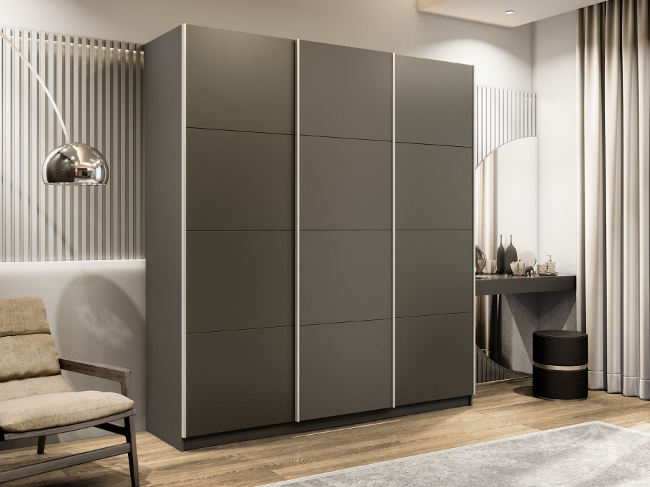Отзывы о Столплит Шкаф-купе Прайм Широкий 3-х дверный Стекла хаки/ДСП/Доводчики 240х57х230 Диамант серый