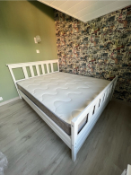 Двуспальная кровать "IRINA" ОЧЕНЬ КРЕПКАЯ так как усилена двойными рейками 20*90 мм по всем сторонам кровати. Благодаря 5 опорным стойкам по середине двуспальной кровати устойчивость повышена, чтобы выдерживать максимальный вес 200 кг.