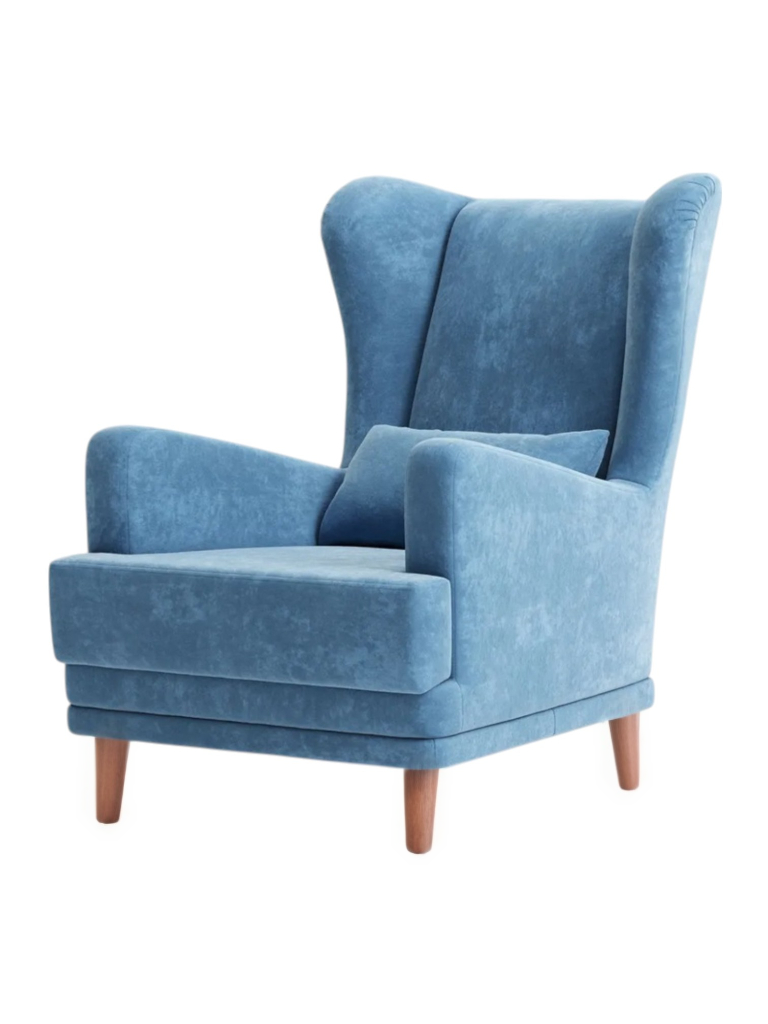Мягкое кресло Вегас сделано из фанеры и не содержит вредных веществ и материалов, что делает ее безопасной для здоровья и безопасной для окружающей среды. Ткань велюр Crush. Наполнитель ППУ имеет несколько преимуществ перед другими материалами, используемыми в производстве мебели. Во-первых, он обладает высокой упругостью и комфортом, что делает его идеальным для создания мягкой мебели и подушек. Во-вторых, ППУ является долговечным материалом, который не теряет своих свойств со временем и не деформируется при использовании.Высокие опоры создают визуальный эффект легкости и позволяют просто и удобно совершить уборку под креслом не передвигая его. Так же большим плюсом является то, что под креслом проходит любой робот пылесос. Ножки кресла выполнены из массива березы, что делает конструкцию кресла надежной и стабильной. Мягкое кресло на ножках станет оригинальным украшением вашего дома. Выполнено в духе английского кресла с ушами. Выверенные формы спинки, мягкие подлокотники в совокупности с правильной эргономикой посадки и укутывающими боковинами сделают кресло любимцем домочадцев и ваших гостей. Мебель для дома. Мягкая подушка в комплекте способствует более комфортному пребыванию в каминном кресле. Плотное соединение нитей препятствует образованию «зацепок» и выбивающихся ниток, не растягивается. Выдерживает нагрузку до 150 кг. Просим обратить внимание, что опоры могут быть вложены внутрь подушки. Классическое широкое кресло - это не только универсальная и стильная мебель, но и функциональное дизайнерское решение для любого помещения. Может быть использовано в разных комнатах, включая гостиную или кухню, у камина для комфортного размещения гостей, в спальню для релаксации, отдыха и чтения книг. В детской комнате можно разместить кресло и использовать для кормления или укачивания детей. Благодаря универсальному яркому дизайну данный предмет мебели впишется в рабочий кабинет, офис, салон красоты и лаунж зону, чтобы ваши клиенты могли чувствовать себя комфортно и расслабленно. Если вы ищете мебель для своей дачи или балкона, то компактное кресло станет идеальным выбором. При правильном подборе цвета ткани кресло будет гармонично смотреться в таких стилях, как: скандинавский, классический, прованс и лофт. Для полного вашего расслабления мы предусмотрели дополнительную опцию поддержки для ног у этого кресла для дома (что очень важно для профилактики заболеваний сосудов). К каждому нашему мягкому креслу вы сможете приобрести пуф в цвет кресла схожий по дизайну. Собрать тем самым полный комплект для домашнего отдыха (пуфик приобретается отдельно).Мы ответственно подходим к подбору материалов для изготовления каждого изделия. Также мы тщательно проверяем мебель перед отправкой нашим дорогим клиентам. Нам важно, чтобы вы гордились покупкой. Ведь это значит, что мы не зря каждое утро приходим на работу!В процессе эксплуатации рекомендуем периодически пылесосить обивку на минимальной мощности с использованием узкой насадки для мебели. Таким образом, вы сможете устранить с поверхности ткани пыль и шерсть животных. Слабые загрязнения можно удалить влажными салфетками, допустимо применение мыльного раствора с нейтральным Ph (например, детское мыло). Также для продления ощущения новизны и лоска ткани рекомендуем время 