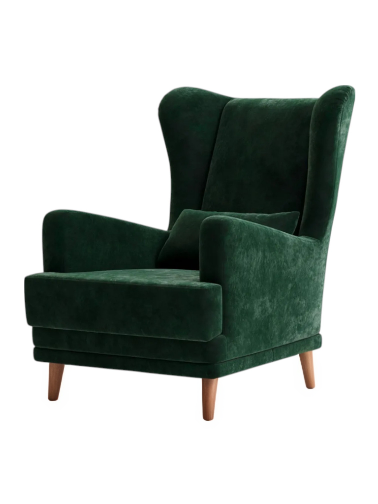 Мягкое кресло Вегас сделано из фанеры и не содержит вредных веществ и материалов, что делает ее безопасной для здоровья и безопасной для окружающей среды. Ткань велюр Crush. Наполнитель ППУ имеет несколько преимуществ перед другими материалами, используемыми в производстве мебели. Во-первых, он обладает высокой упругостью и комфортом, что делает его идеальным для создания мягкой мебели и подушек. Во-вторых, ППУ является долговечным материалом, который не теряет своих свойств со временем и не деформируется при использовании.Высокие опоры создают визуальный эффект легкости и позволяют просто и удобно совершить уборку под креслом не передвигая его. Так же большим плюсом является то, что под креслом проходит любой робот пылесос. Ножки кресла выполнены из массива березы, что делает конструкцию кресла надежной и стабильной. Мягкое кресло на ножках станет оригинальным украшением вашего дома. Выполнено в духе английского кресла с ушами. Выверенные формы спинки, мягкие подлокотники в совокупности с правильной эргономикой посадки и укутывающими боковинами сделают кресло любимцем домочадцев и ваших гостей. Мебель для дома. Мягкая подушка в комплекте способствует более комфортному пребыванию в каминном кресле. Плотное соединение нитей препятствует образованию «зацепок» и выбивающихся ниток, не растягивается. Выдерживает нагрузку до 150 кг. Просим обратить внимание, что опоры могут быть вложены внутрь подушки. Классическое широкое кресло - это не только универсальная и стильная мебель, но и функциональное дизайнерское решение для любого помещения. Может быть использовано в разных комнатах, включая гостиную или кухню, у камина для комфортного размещения гостей, в спальню для релаксации, отдыха и чтения книг. В детской комнате можно разместить кресло и использовать для кормления или укачивания детей. Благодаря универсальному яркому дизайну данный предмет мебели впишется в рабочий кабинет, офис, салон красоты и лаунж зону, чтобы ваши клиенты могли чувствовать себя комфортно и расслабленно. Если вы ищете мебель для своей дачи или балкона, то компактное кресло станет идеальным выбором. При правильном подборе цвета ткани кресло будет гармонично смотреться в таких стилях, как: скандинавский, классический, прованс и лофт. Для полного вашего расслабления мы предусмотрели дополнительную опцию поддержки для ног у этого кресла для дома (что очень важно для профилактики заболеваний сосудов). К каждому нашему мягкому креслу вы сможете приобрести пуф в цвет кресла схожий по дизайну. Собрать тем самым полный комплект для домашнего отдыха (пуфик приобретается отдельно).Мы ответственно подходим к подбору материалов для изготовления каждого изделия. Также мы тщательно проверяем мебель перед отправкой нашим дорогим клиентам. Нам важно, чтобы вы гордились покупкой. Ведь это значит, что мы не зря каждое утро приходим на работу!В процессе эксплуатации рекомендуем периодически пылесосить обивку на минимальной мощности с использованием узкой насадки для мебели. Таким образом, вы сможете устранить с поверхности ткани пыль и шерсть животных. Слабые загрязнения можно удалить влажными салфетками, допустимо применение мыльного раствора с нейтральным Ph (например, детское мыло). Также для продления ощущения новизны и лоска ткани рекомендуем время 