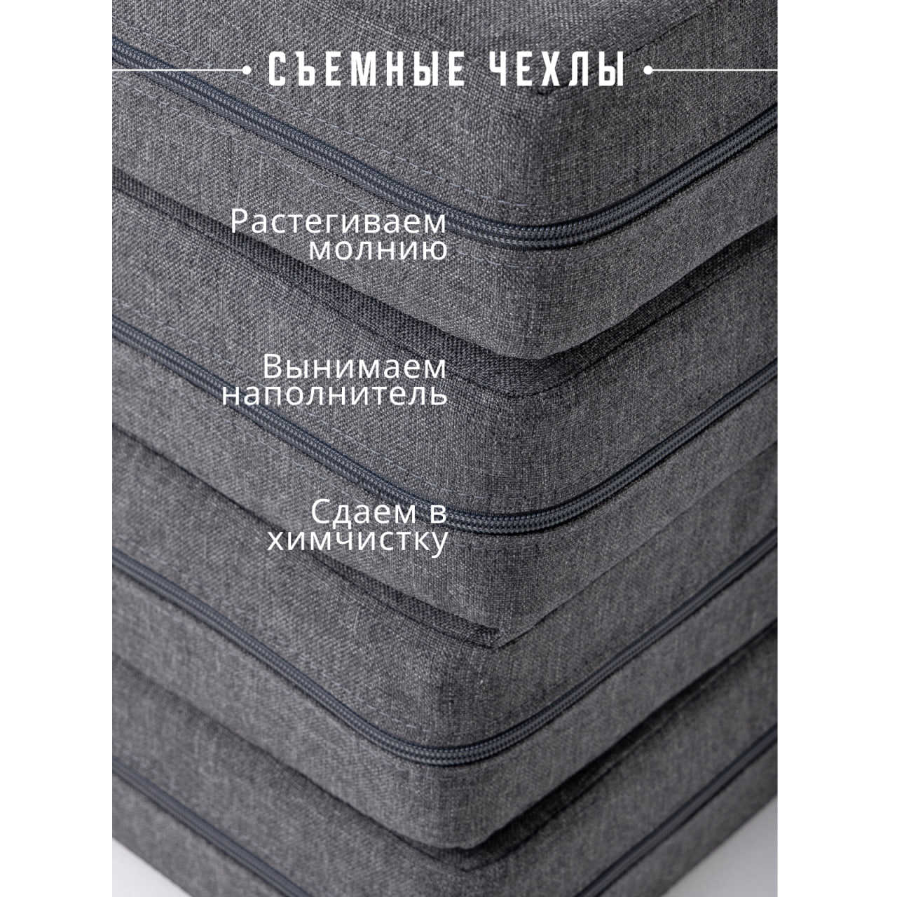 Износостойкая рогожка и съемный чехол выдерживают до 50 000 циклов (мартиндейл), что говорит о долговечности — изделие прекрасно подходит для ежедневного активного использования, максимальная нагрузка составляет 100 кг. Мягкий материал позволяет использовать пуф в роли спального место для гостей.