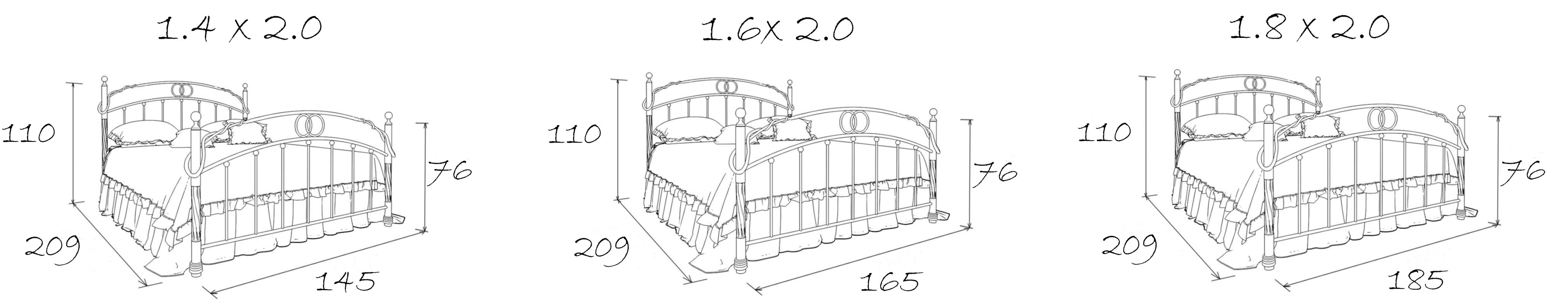 Размеры спального места (ДхШ) 2000х1600. Высота изножья 760 мм.