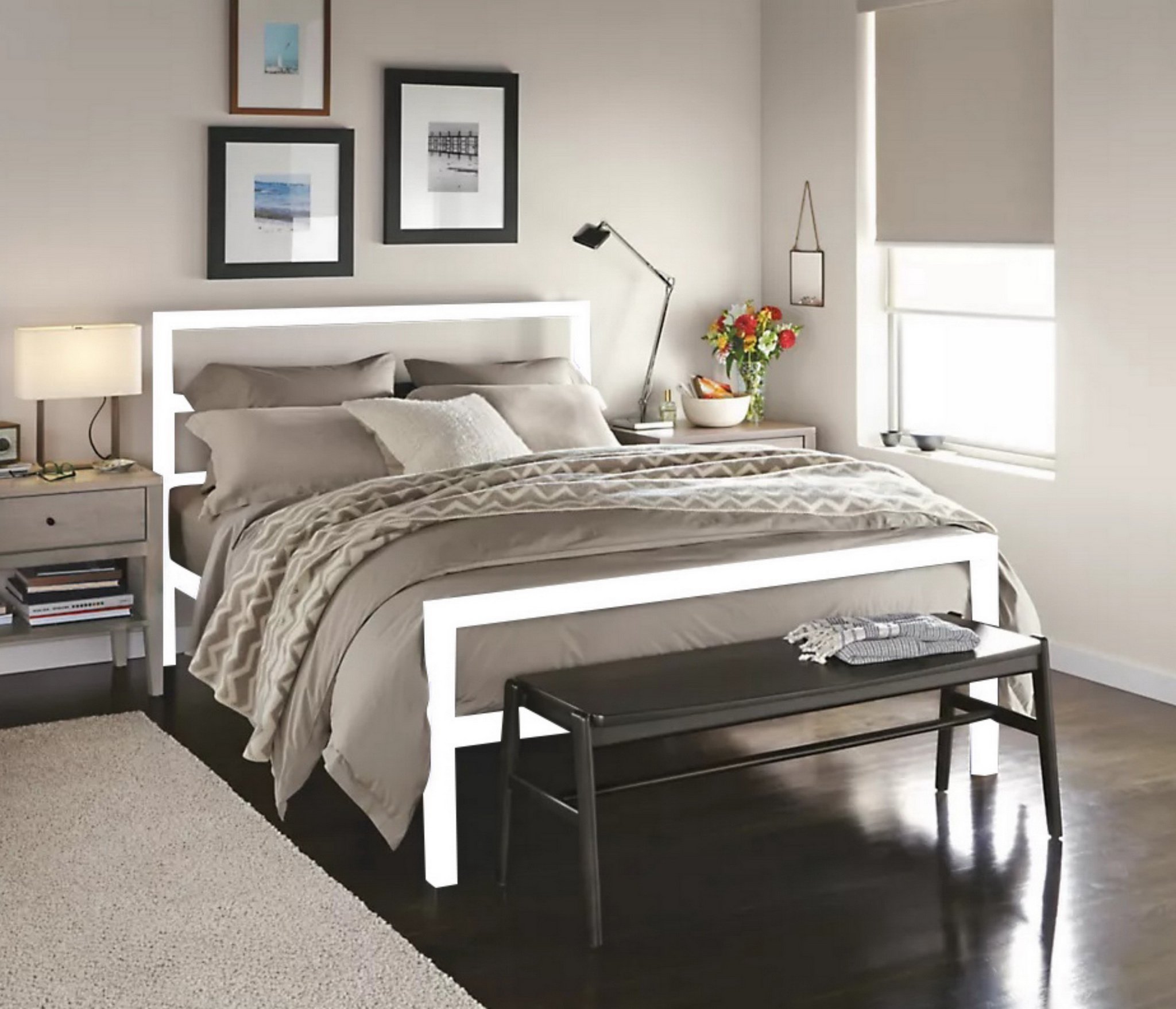 Благодаря отсутствию сплошного полотна изголовья и основания и его замены на горизонтальные перекладины модель выглядит изящно и совершенно не громоздко, благодаря чему может гармонично дополнить любой интерьер в современной стилистике.