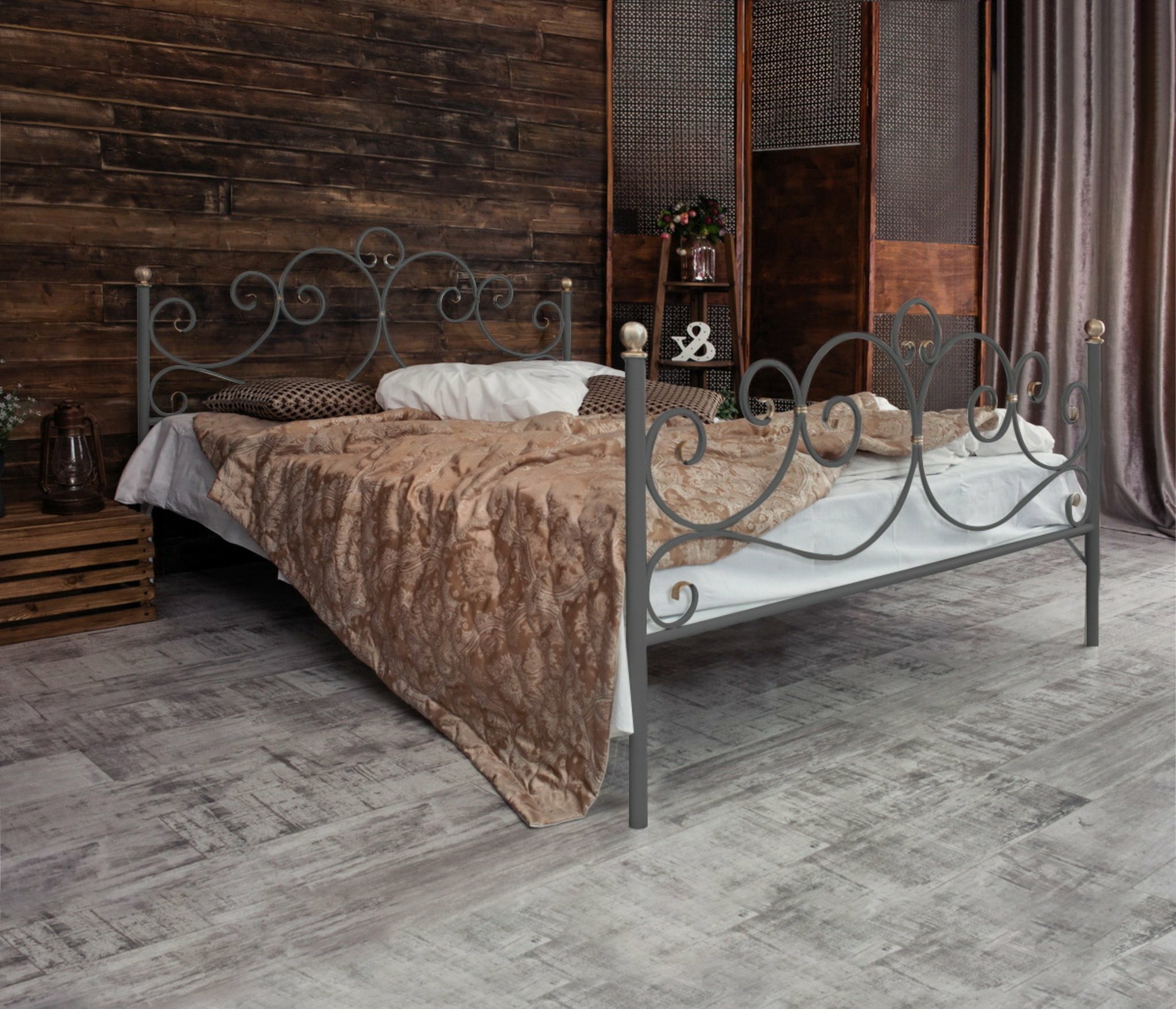 Кованая кровать Флоренция 1.4 с двумя спинками (Серый)