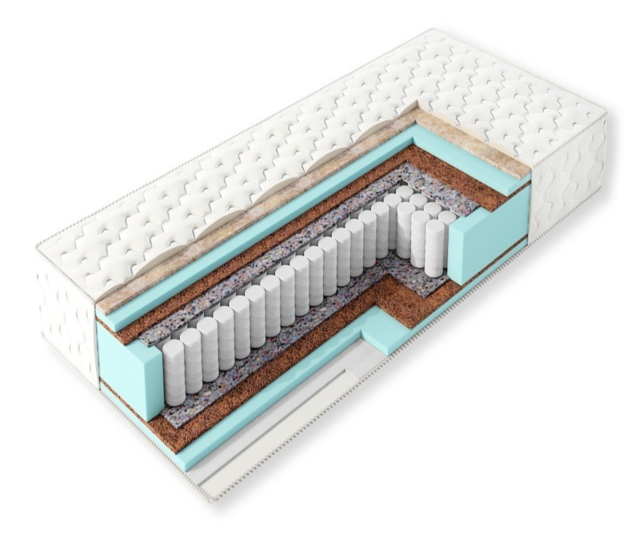 2 сторона: Кокосовое волокно 10мм, пенополиуретан 20 мм, овечья шерсть;