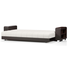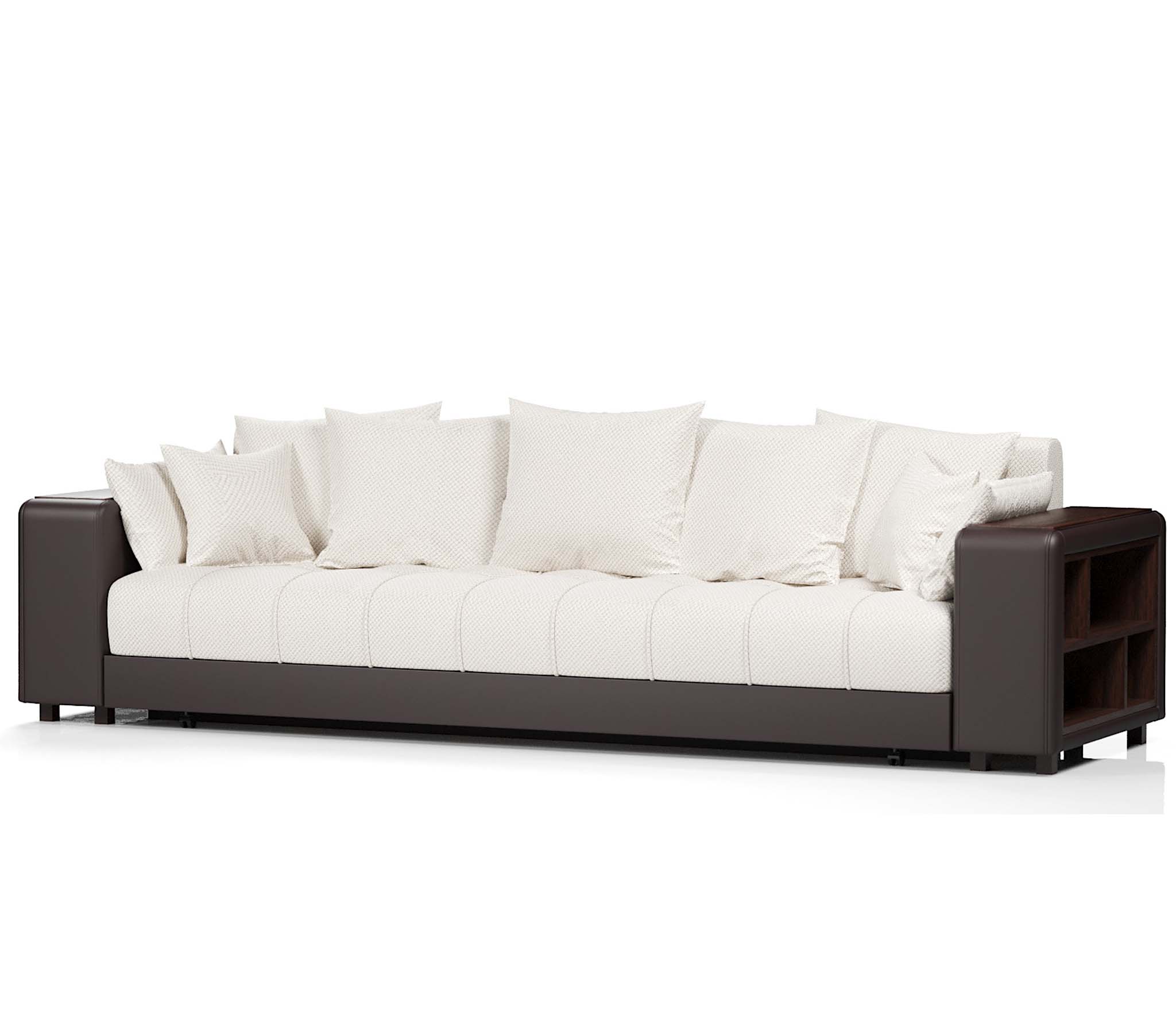 Прямой диван Дубай это отличный выбор для тех, кто планирует создать уют в своей квартире. Модель имеет выдержанный дизайн без элементов, которые перегружают её. С каждой стороны в подлокотниках установлены полки, куда вы сможете складывать различные мелочи, пульт итд.
