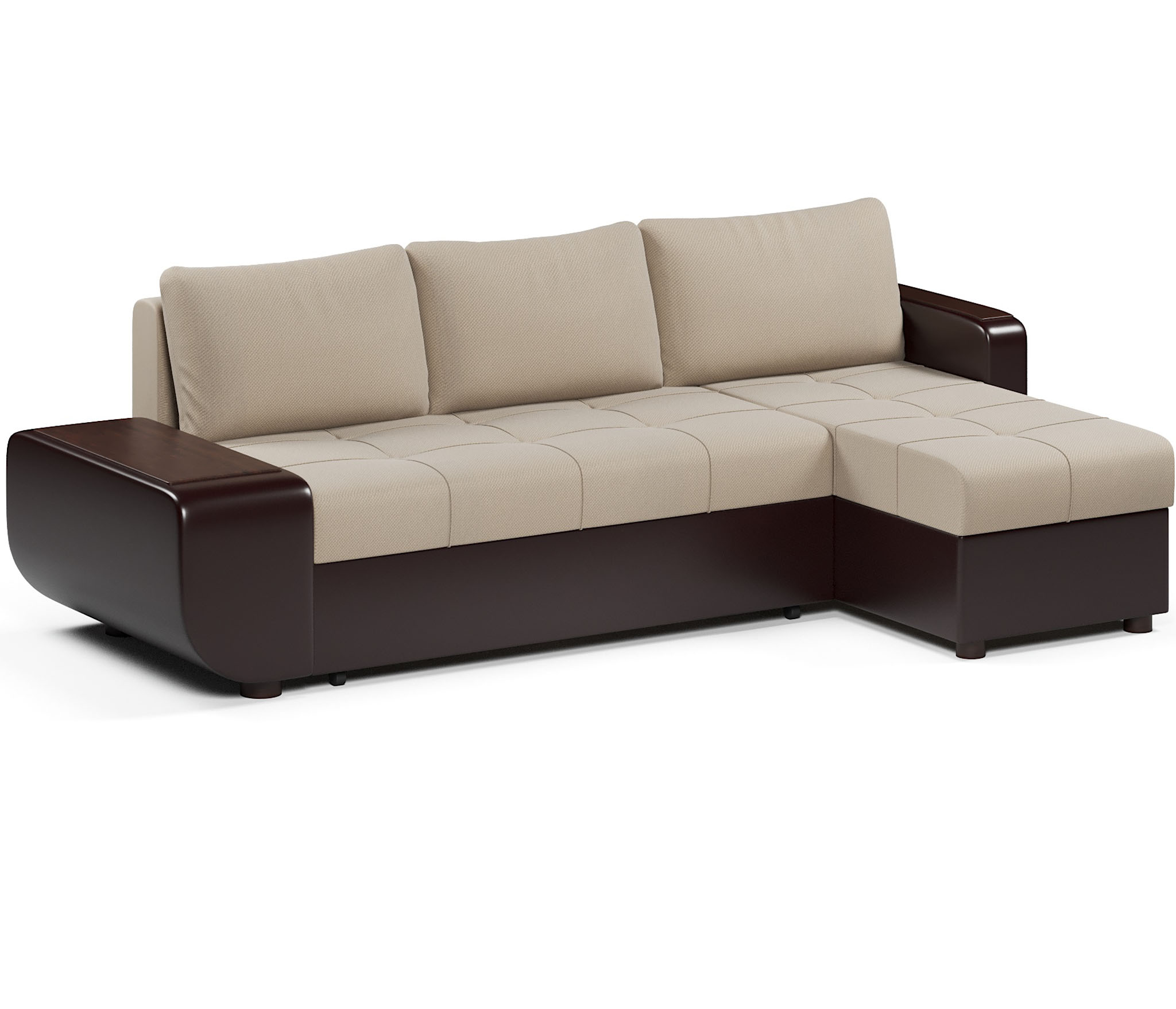 Отзывы о Столплит Диван-кровать угловой Атланта со столиком еврокнижка,велюр+экокожа Бежевый