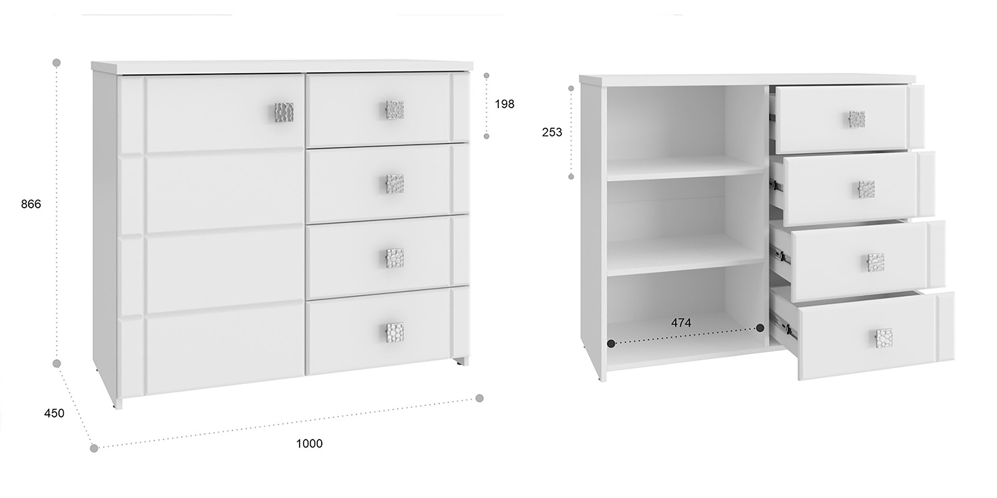 Комод Изабель ИЗ-52К очень функциональный и вместительный. В комоде имеется три полки и четыре выдвижных ящиков. На широкую верхнюю поверхность можно поставить телевизор. Важная информация.Мебель доставляется в разобранном виде, в упаковках.
