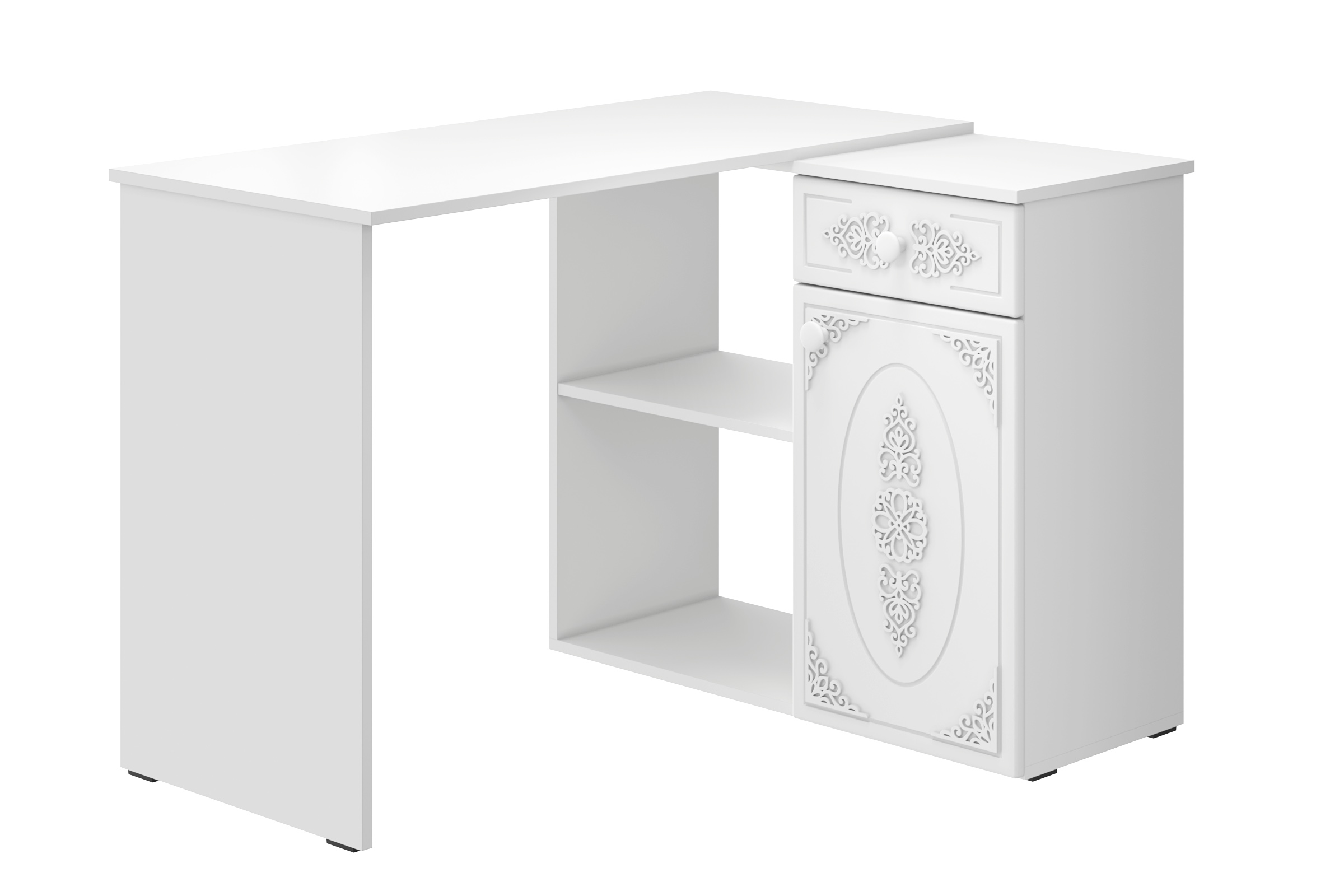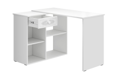 Угловой стол Ассоль АС-67 станет отличным местом для работы. В выдвижном ящике можно хранить блокнот, канцелярские принадлежности. Стильный дизайн позволит разместить в любом современной интерьере. Модуль может быть собран в зеркальном варианте "правым" или "левым". Фурнитура: телескопические направляющие полного выдвижения, петли с доводчиками.