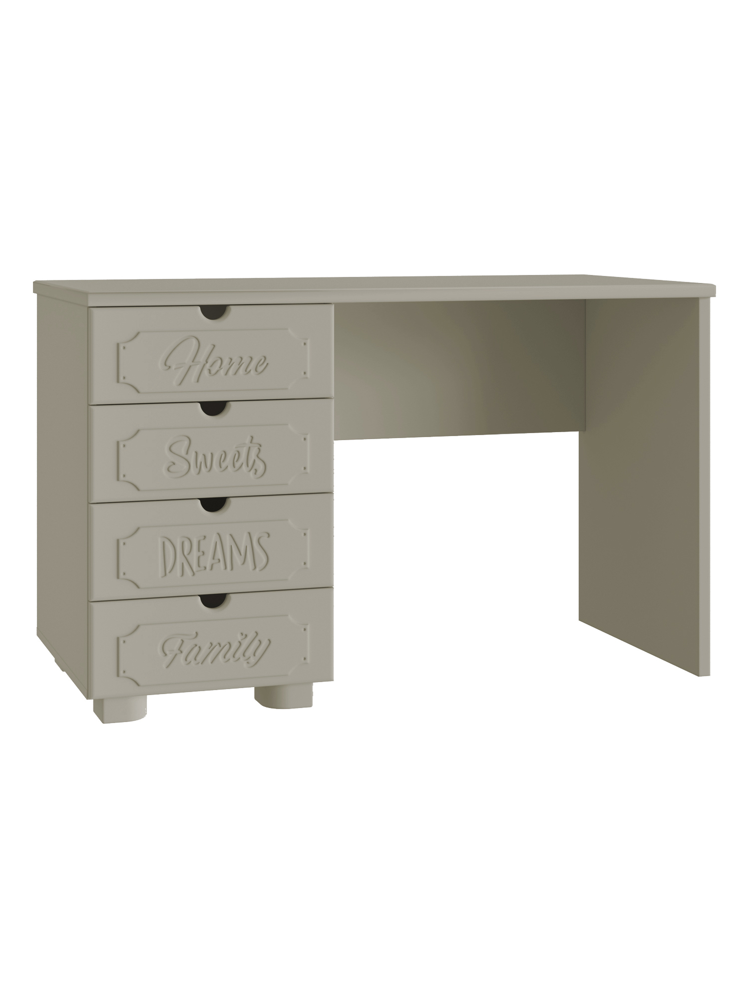 Система мебели "Дримстар" включает в себя отдельные самостоятельные модули, сочетающие в себе функциональность и уникальность дизайна. С базовым набором модулей легко оформить интерьер любого помещения. Все модули можно комбинировать между собой. Фасады украшены надписями, которые придают моделям оригинальный вид. Коллекция "Дримстар" поможет вам в оформлении стильного и современного интерьера. Столешница изготовлена из МДФ толщиной 25 мм. В ящиках используются телескопические направляющие полного выдвижения. Расположение ящиков только с правой стороны.