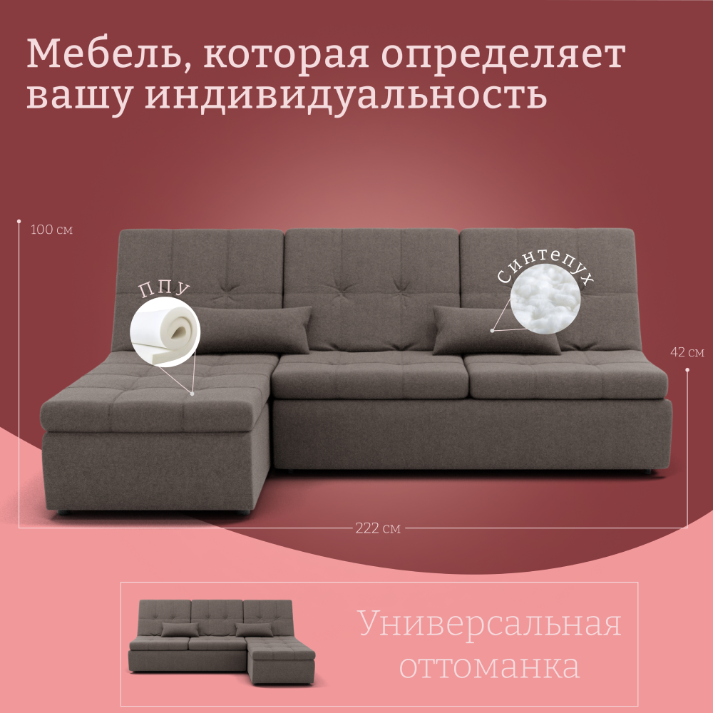 Отзывы о Столплит Угловой диван Калифорния-2 ППУ, велюр Коричнево-серый