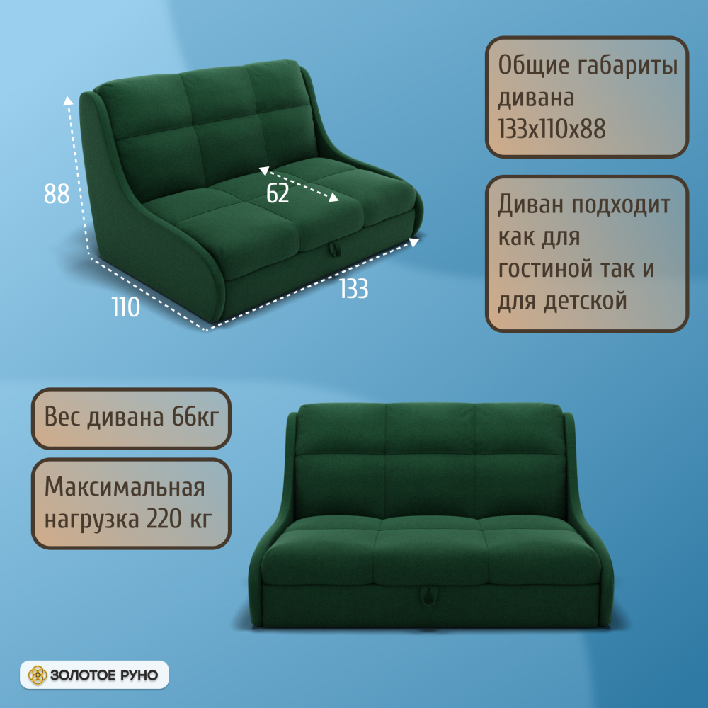 Отзывы о Столплит Прямой диван Куба на 1200 ППУ, велюр Зеленый