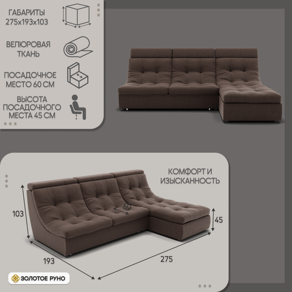 Отзывы о Столплит Угловой диван Монако-2 ППУ, велюр Коричневый