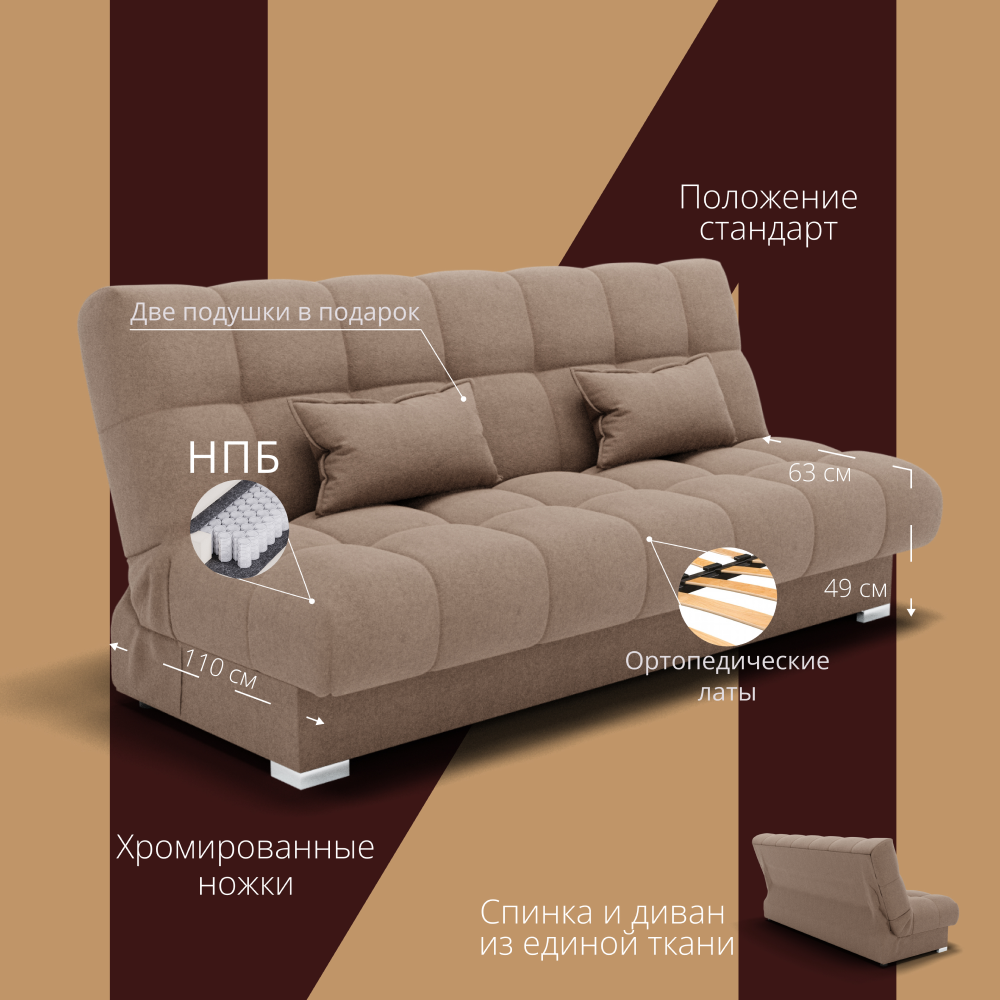 Отзывы о Столплит Прямой диван Фиеста-1 НПБ, велюр бежевый/коричневый