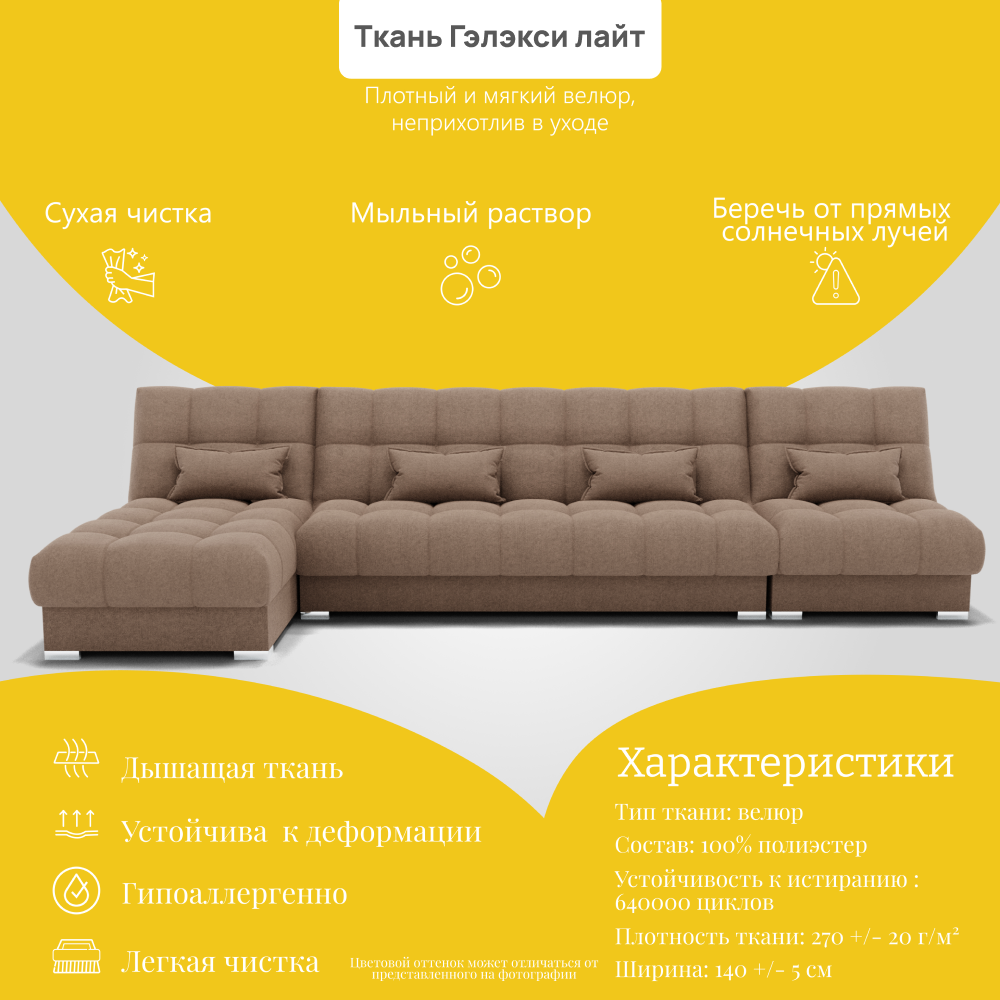 Отзывы о Столплит Угловой диван Фиеста-3 НПБ, велюр бежевый/коричневый