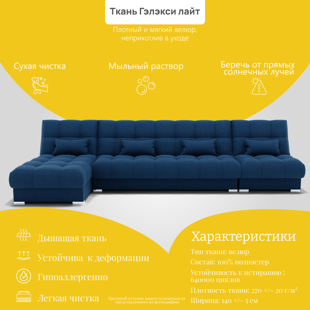 Отзывы о Столплит Угловой диван Фиеста-3 НПБ, велюр Синий