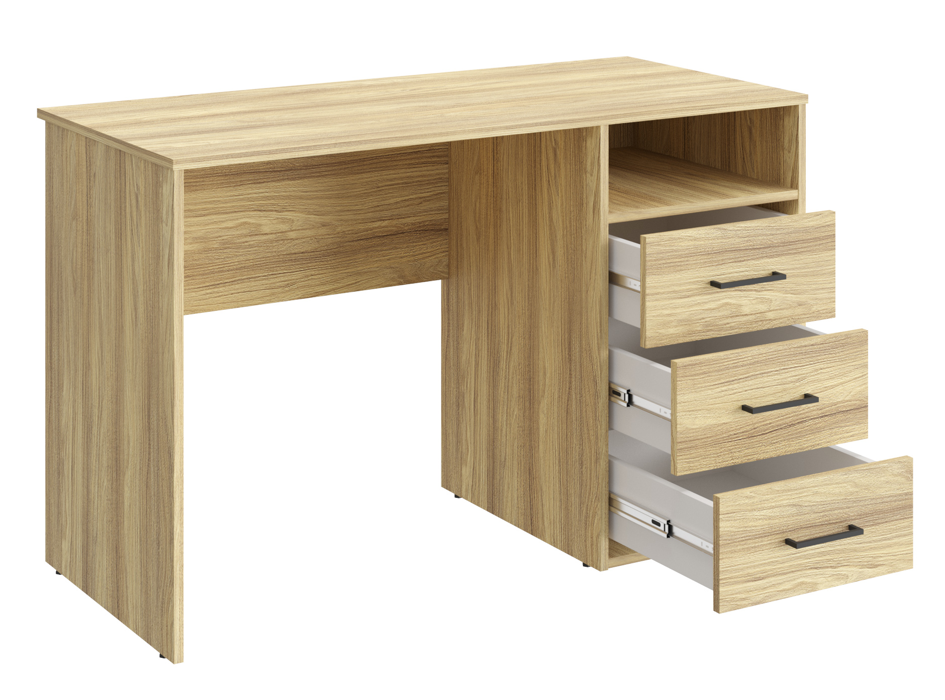 Письменный стол Оскар ОС-20 идеально подойдет для создания рабочего места в небольшом помещении. Благодаря своей универсальности стол с ящиками и нишей может использоваться как компьютерный, офисный, письменный или стол для ноутбука. С его помощью вы сможете организовать порядок на своем рабочем месте. Стол гармонично впишется в любой стиль интерьера. Современный и простой дизайн делает его идеальным для использования дома и в офисе. Свес крышки в 30 мм обеспечит прилегание к стене с любым плинтусом.
