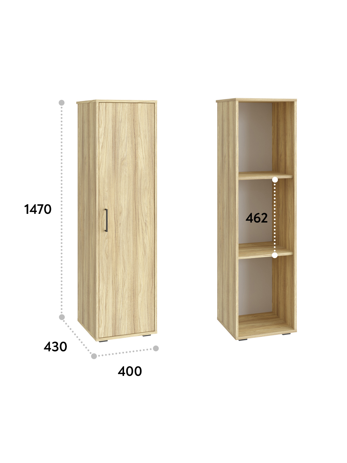 Шкаф-пенал Оскар ОС-01 - отличное решение для организации системы хранения. Лаконичный дизайн и компактные размеры делают эту мебель оптимально подходящей для любых помещений, как жилых, так и офисных. Шкаф пенал может украсить детскую комнату, спальню или офис, подойдет к любому интерьеру. За распашной дверцей располагаются две вместительные полки. Шкафчик обеспечит хранение вещей, игрушек, книг или других принадлежностей. Фасад распашного шкафа декорирован стильной ручкой, что делает открывание наиболее удобным. Дверь можно повесить как на правую, так и на левую сторону. Регулируемые опоры позволяют компенсировать возможные неровности пола. Фурнитура: ручка пластик, петли с доводчиками.