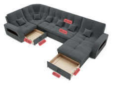 Он имеет высоту 97 см, ширину 350 см и глубину 187 см. Обит велюром - Veluta lux. Диван обладает универсальным расположением угла, что позволяет его использовать в любом помещении.