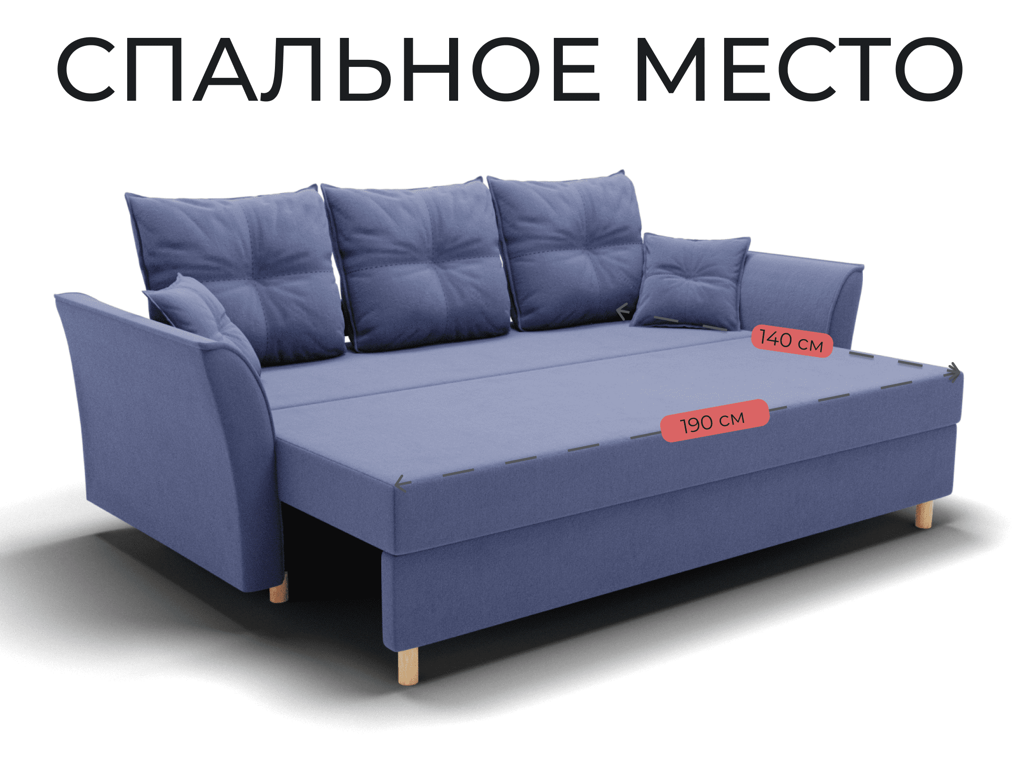 Спальное место: ширина - 140 см, длина - 190 см. Максимальная нагрузка - 250 кг.